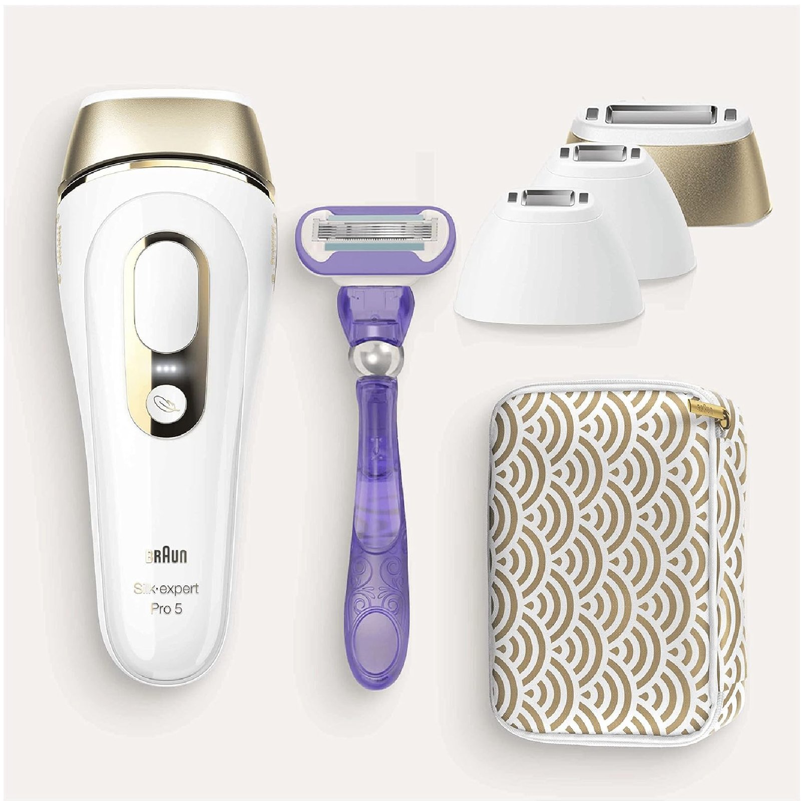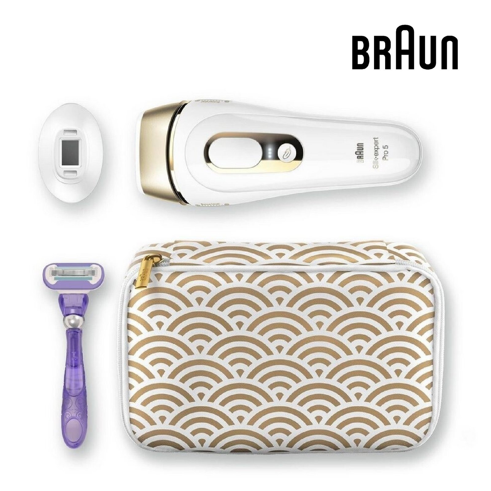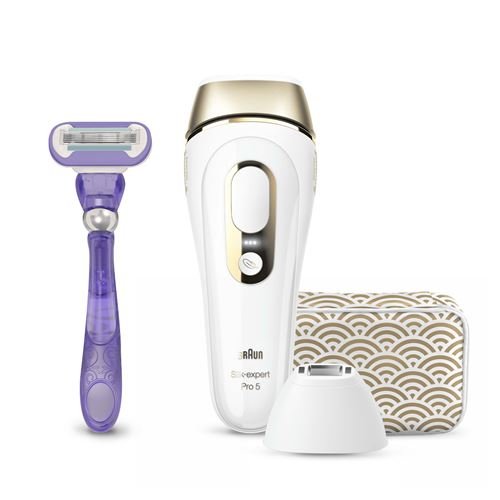 Appareil de BeautéBraun Silk Expert Pro 5, épilateur à lumière pulsée, avec pochette, tête de précision et rasoir Venus, alternative à l’épilation au laser, PL5157