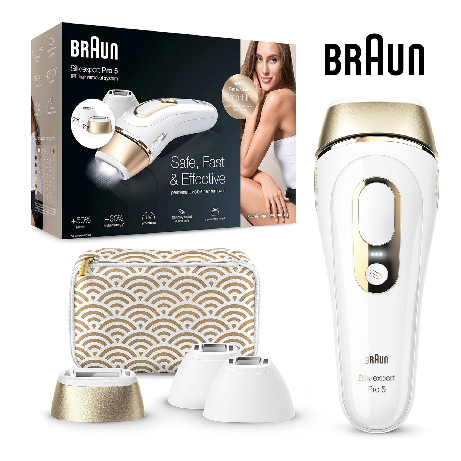 Braun IPL Silk-Expert Pro 5, épilation à domicile avec pochette, tête de précision et rasoir Venus, alternative à l’épilation au laser, PL5137