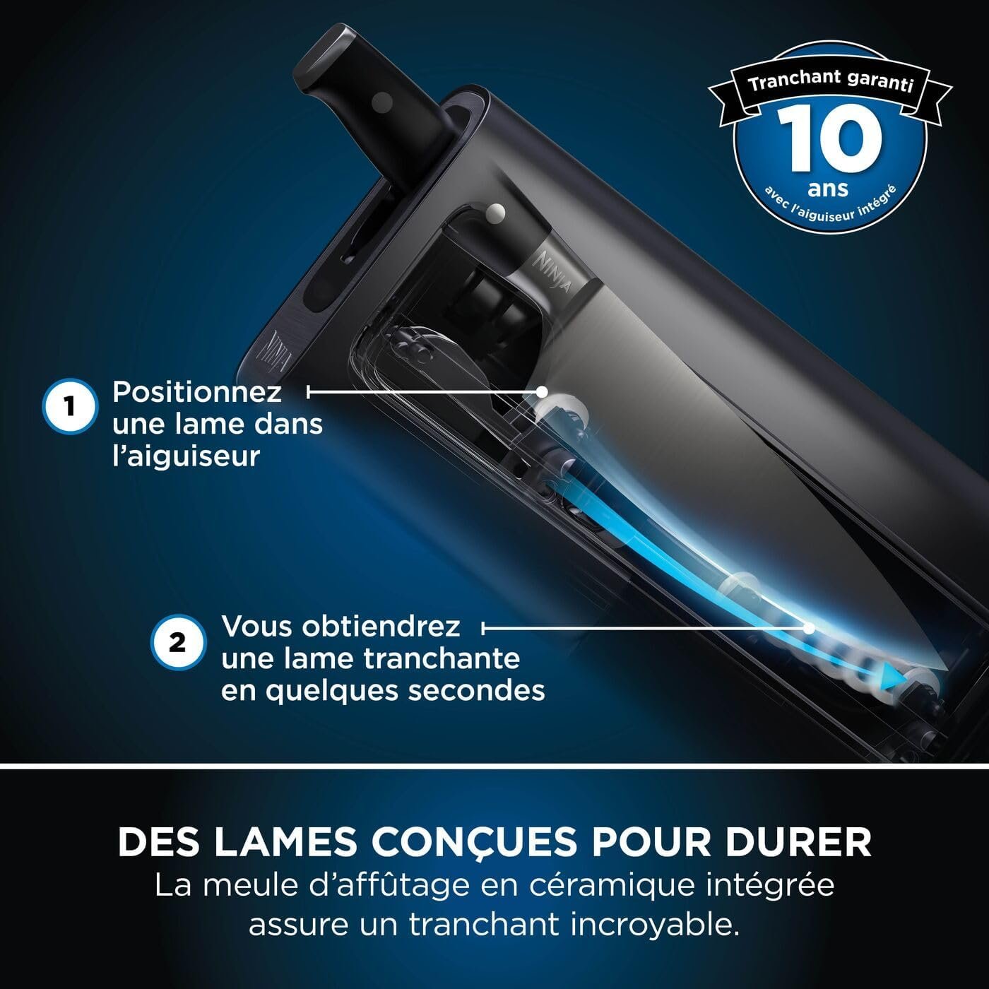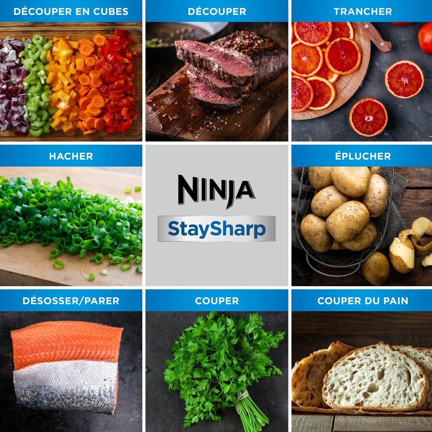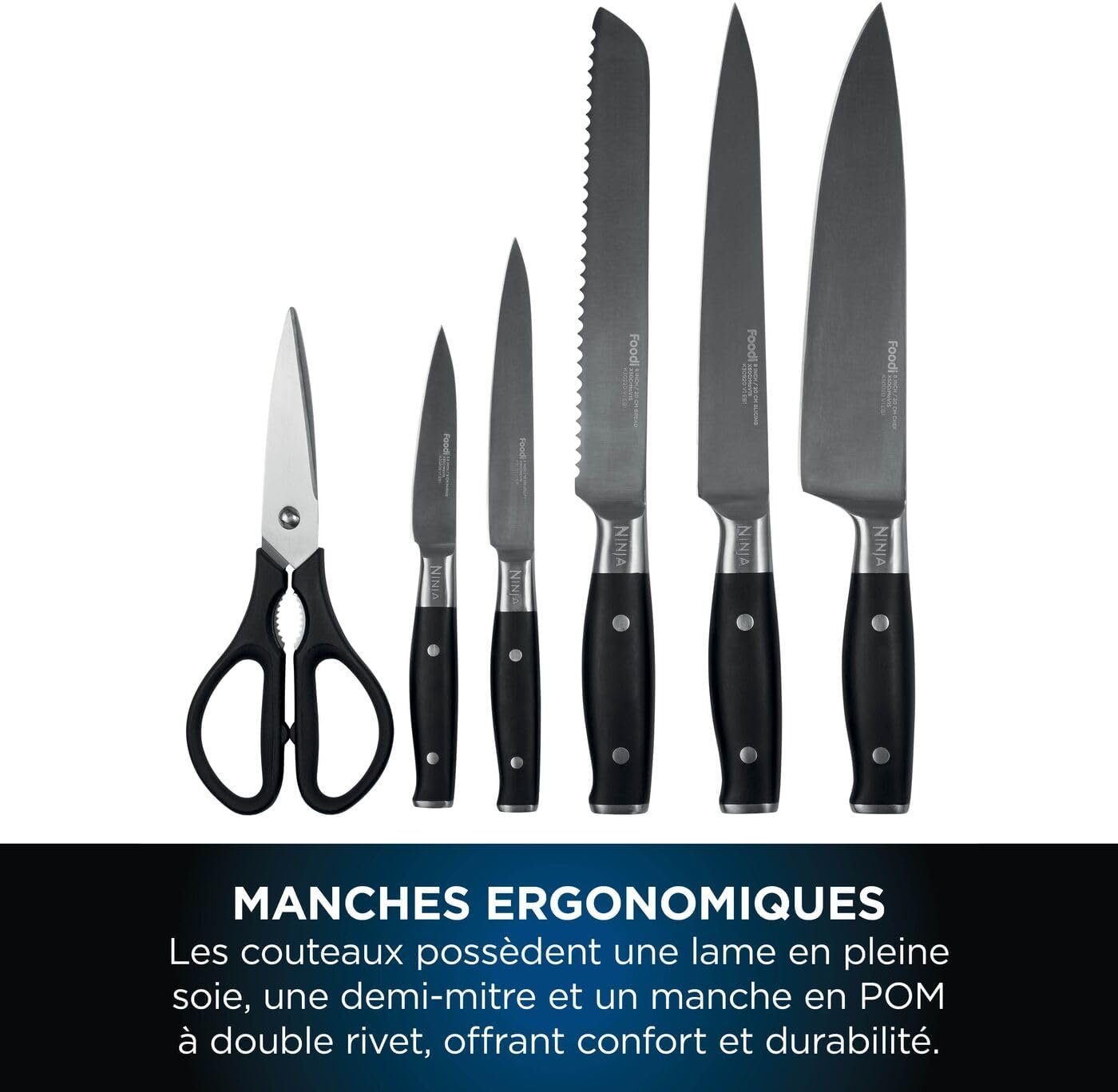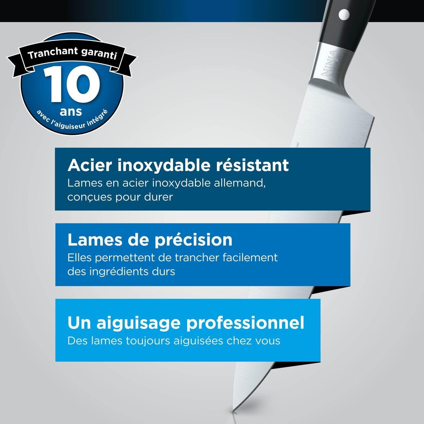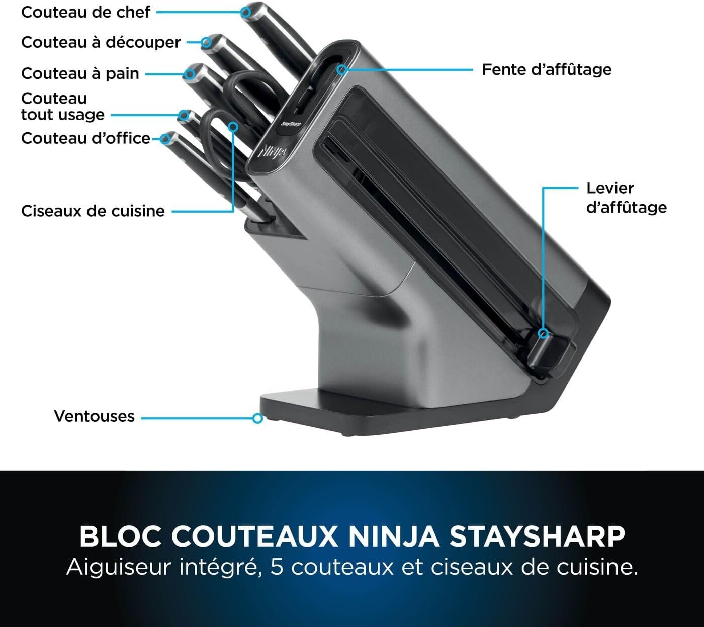 Ninja Foodi Bloc-couteaux StaySharp avec Affûteur, Ensemble de Couteaux 6 Pièces Aiguisés: Couteau de chef, à pain, à trancher, universel, à éplucher et ciseaux, en Acier Inoxydable, K32006EU