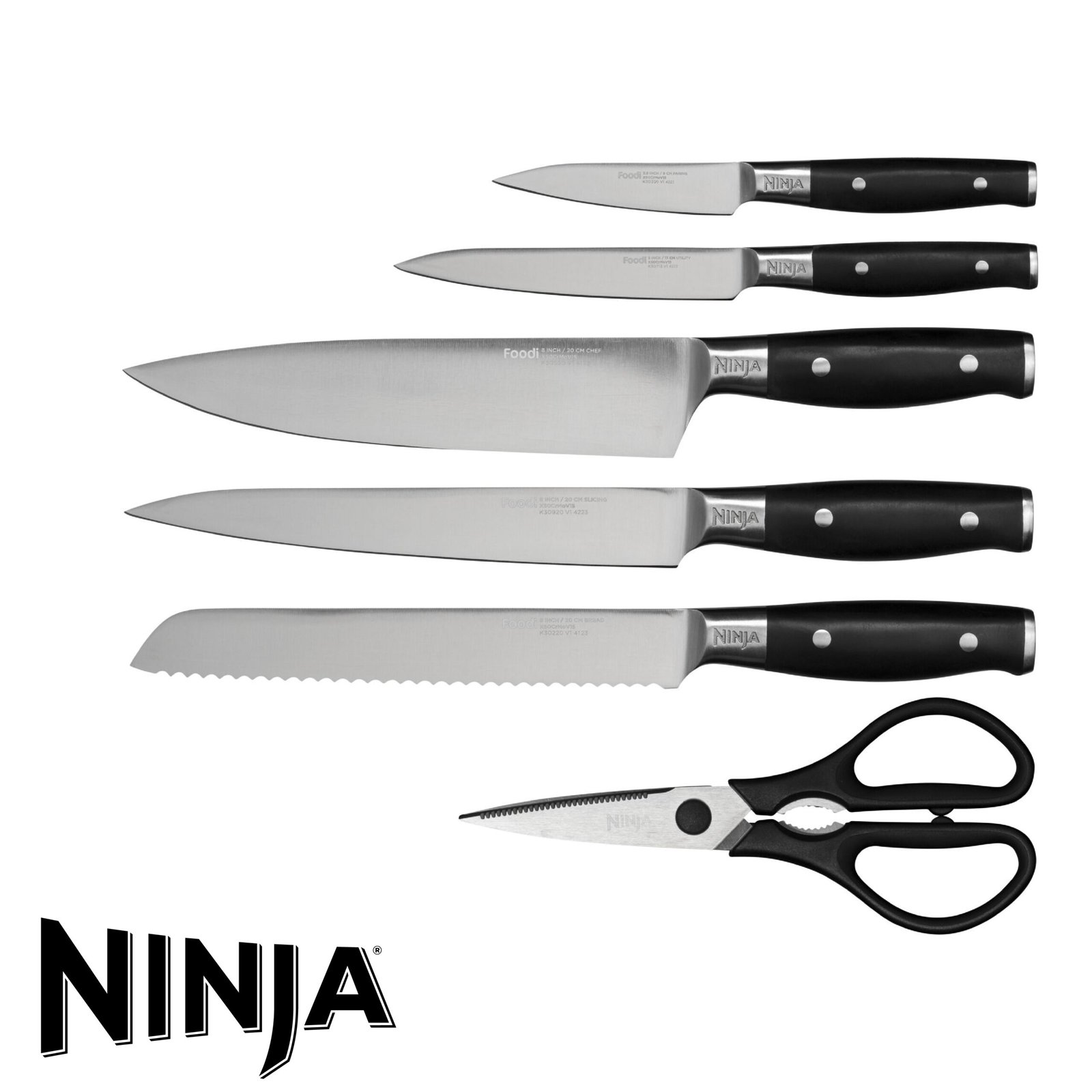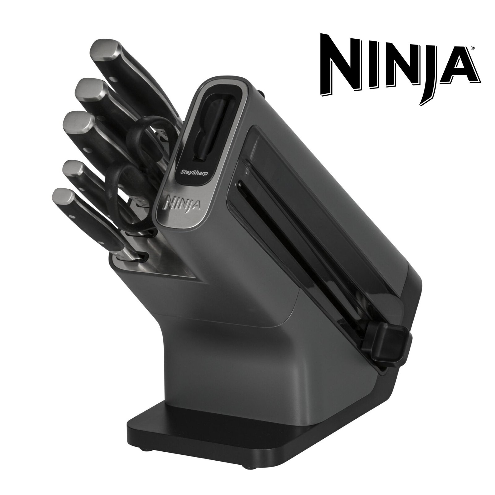 Ninja Foodi Bloc-couteaux StaySharp avec Affûteur, Ensemble de Couteaux 6 Pièces Aiguisés: Couteau de chef, à pain, à trancher, universel, à éplucher et ciseaux, en Acier Inoxydable, K32006EU x1