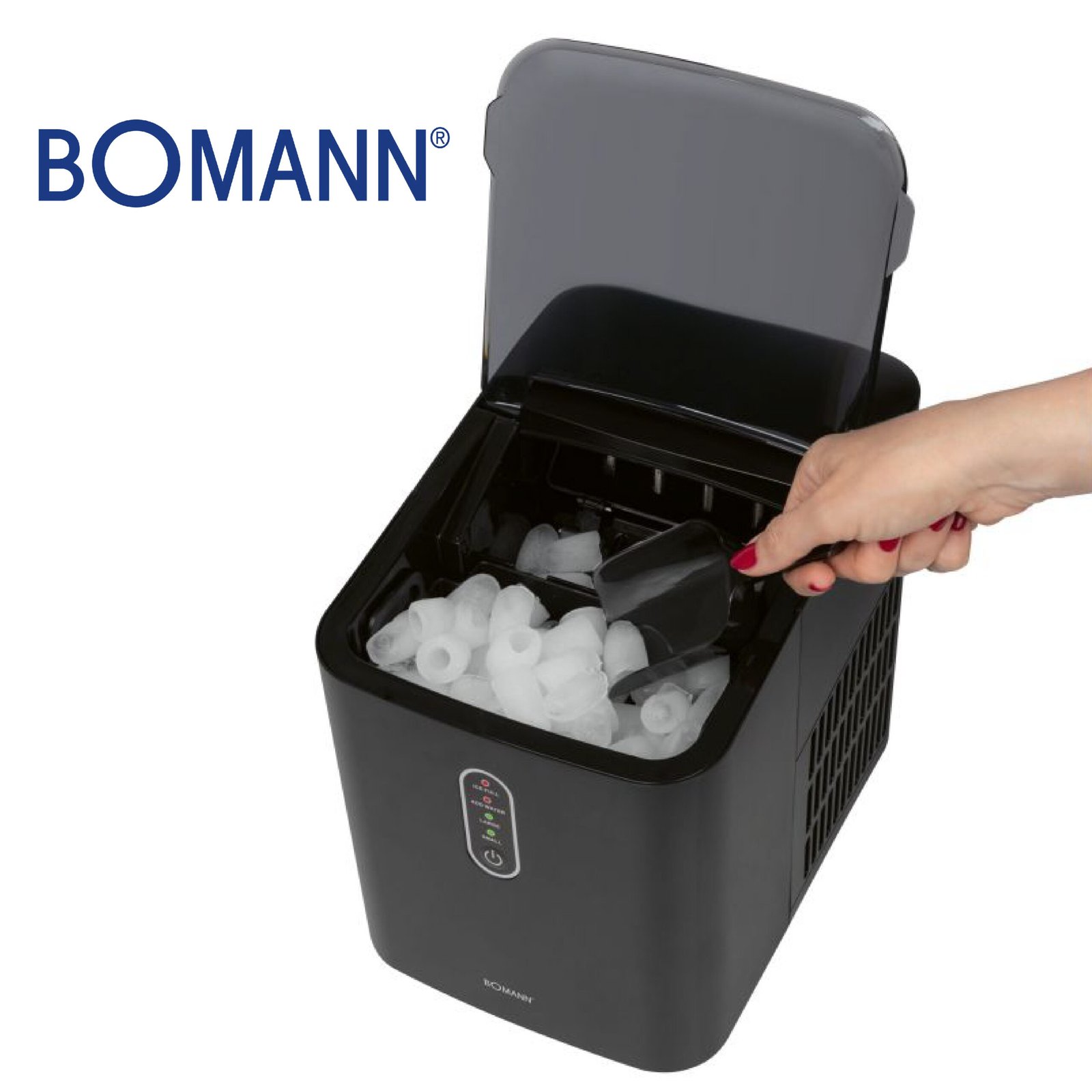 Bomann® EWB 6068 CB Machine à glaçons à production rapide – Glaçons en 10 minutes – Jusqu’à 10 kg de glace en 24 heures – Machine à glaçons avec 2 tailles de glaçons et réservoir d’eau de 1,1 l Noir