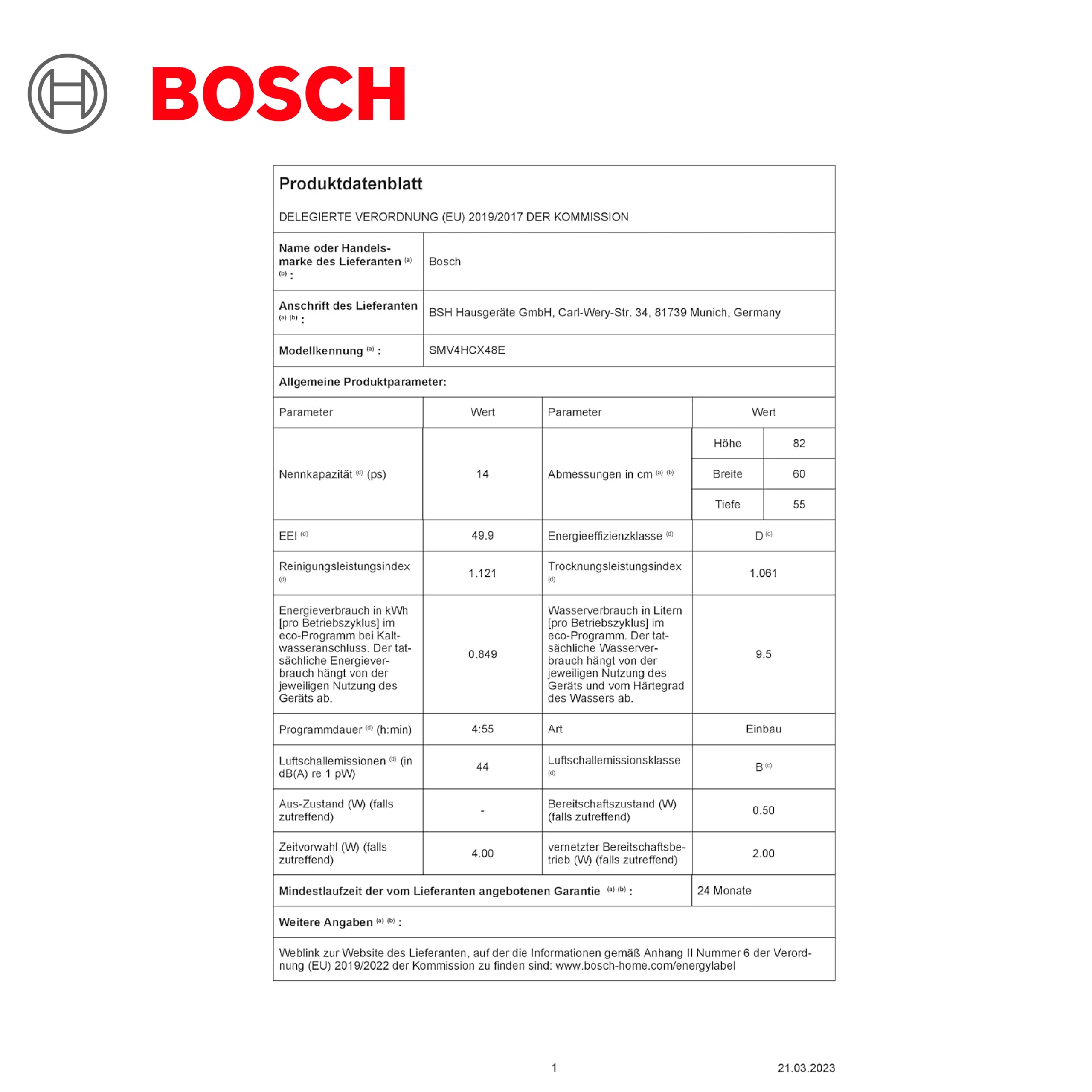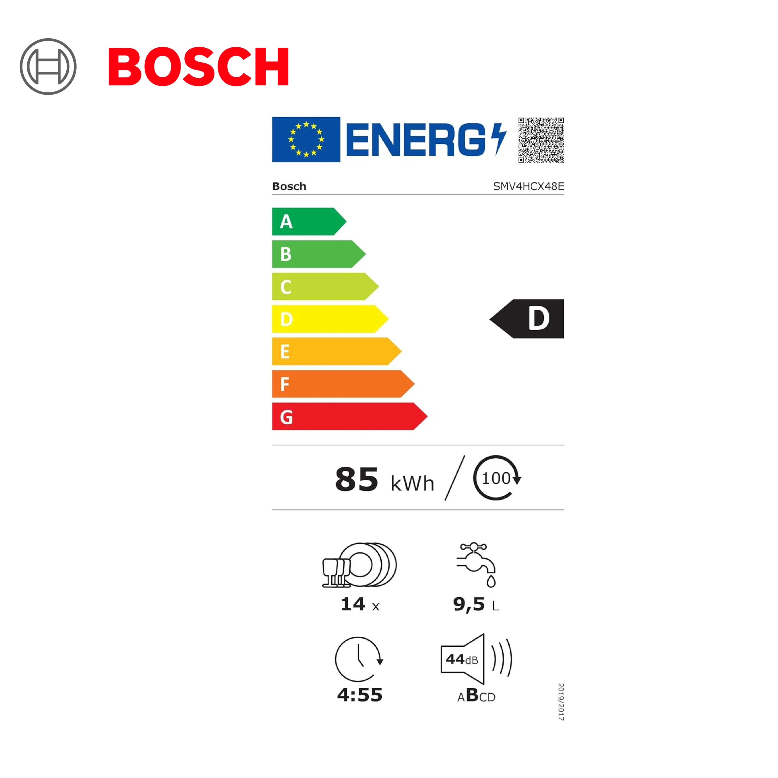 Bosch SMV4HCX48E – Série 4, Lave-vaisselle encastrable – 60cm – Home Connect – 14 couverts – Moteur EcoSilence
