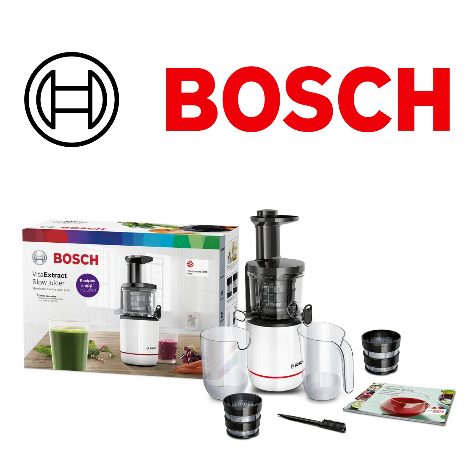 Bosch VitaExtract Extracteur de jus avec 2 filtres pour des jus et smoothies délicieux de fruits et légumes – 150 W MESM500W