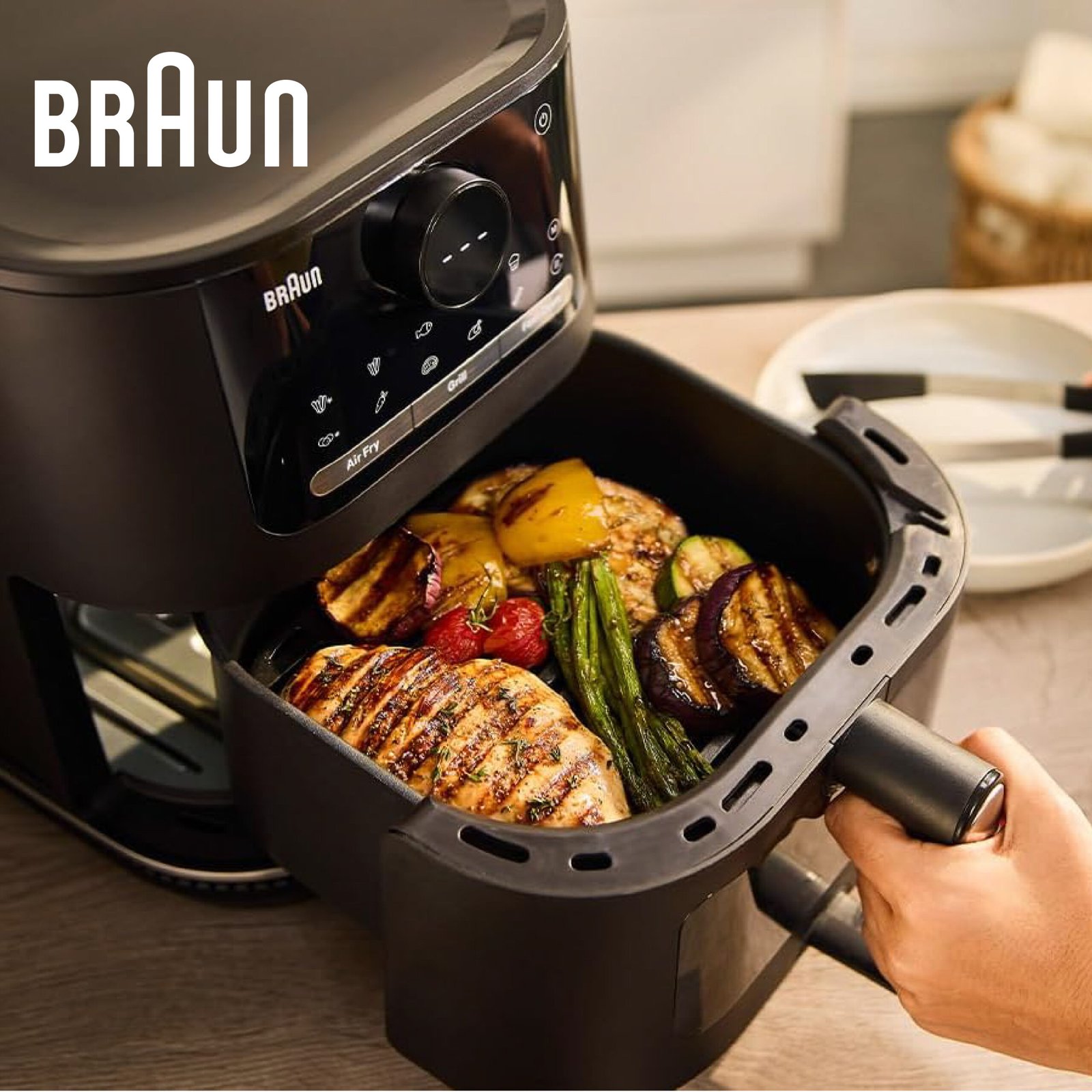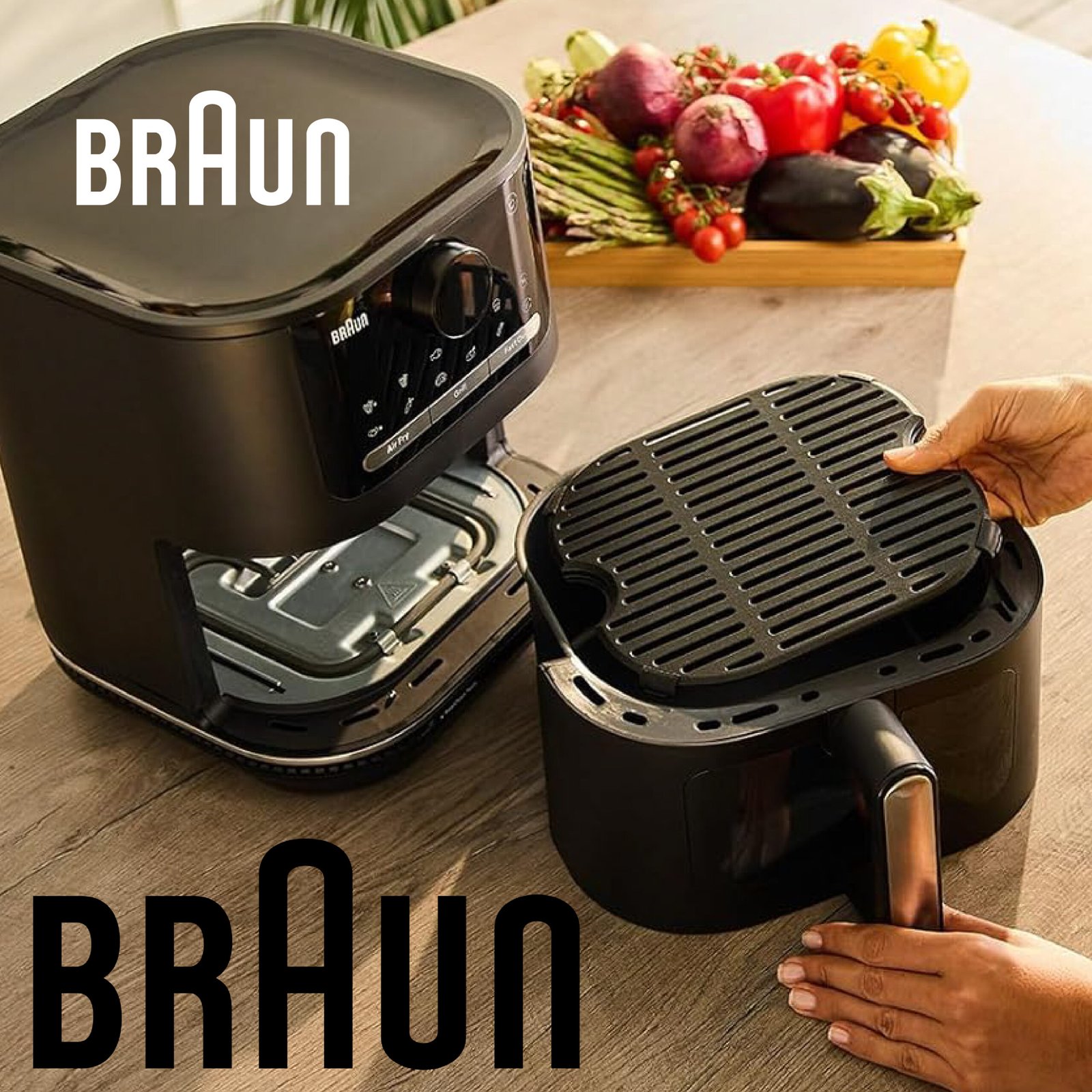 Braun MultiFry5 Double resistance HF5030IBK, Friteuse à Air avec Capacité de 6L, Contrôle Numérique de 80-200°, Technologie RealAir, 8 Programmes, Commande Tactile, Panier Lavable au Lave-Vaisselle, 1700W