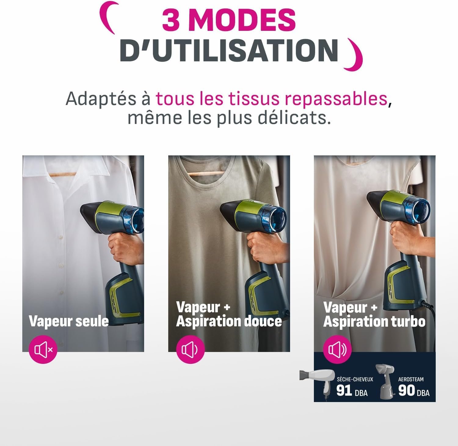 Calor AeroSteam défroisseur à main, Nouvelle technologie révolutionnaire, Résultats d’un fer à repasser en un seul passage, Rapide, Facile d’utilisation sans crochet, Fabriqué en France, DT9810C0