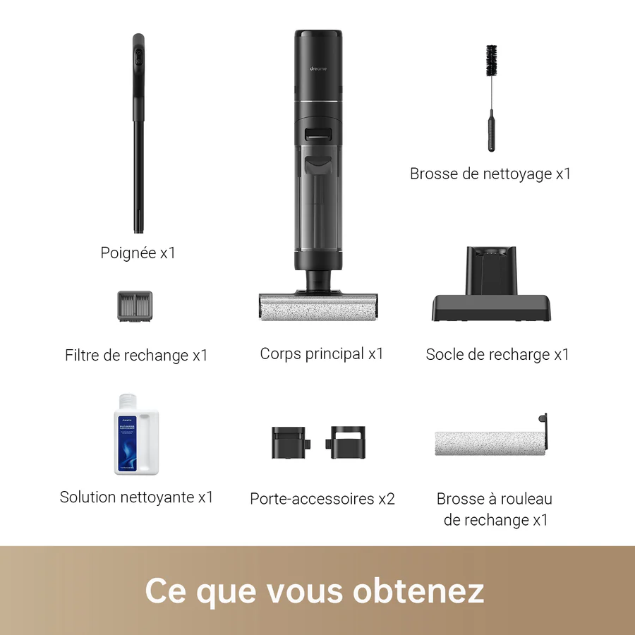 DREAME H12 Pro Aspirateur Eau et Poussière Intelligent Sec et Humide sans Fil, Séchage àl’air Chaud, Nettoyage des Bords, Réservoir Eau 900 ML, Autonomie de 35 Min, Écran LED