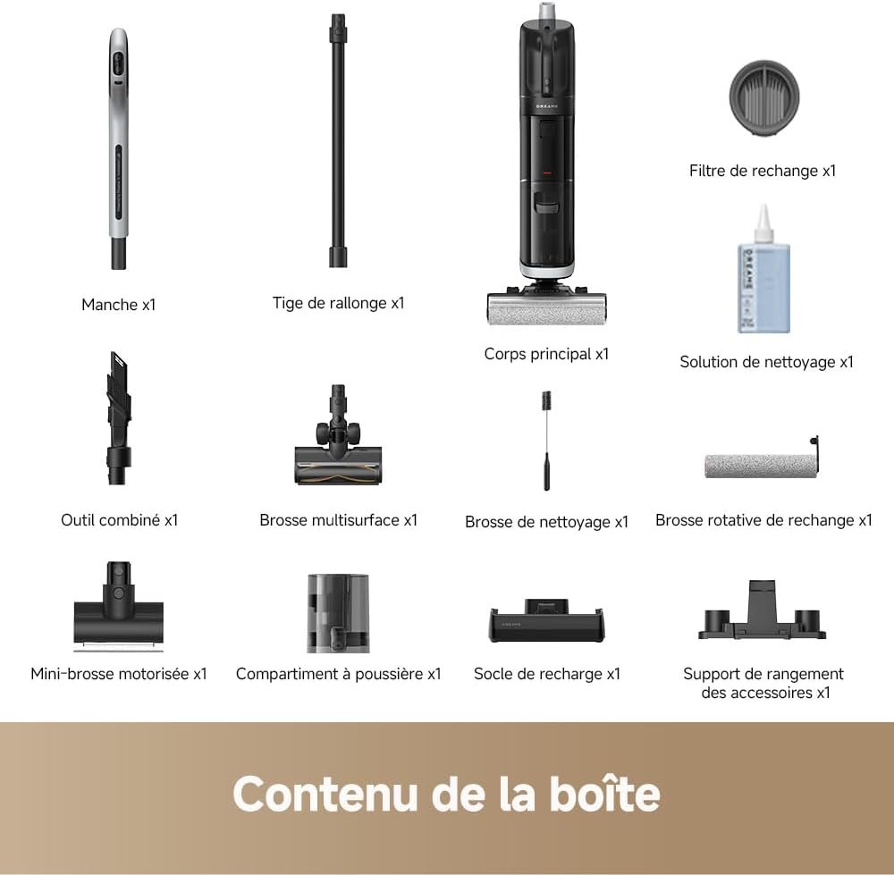 AspirateurDREAME H12 Pro Aspirateur Eau et Poussière Intelligent Sec et Humide sans Fil, Séchage àl’air Chaud, Nettoyage des Bords, Réservoir Eau 900 ML, Autonomie de 35 Min, Écran LED