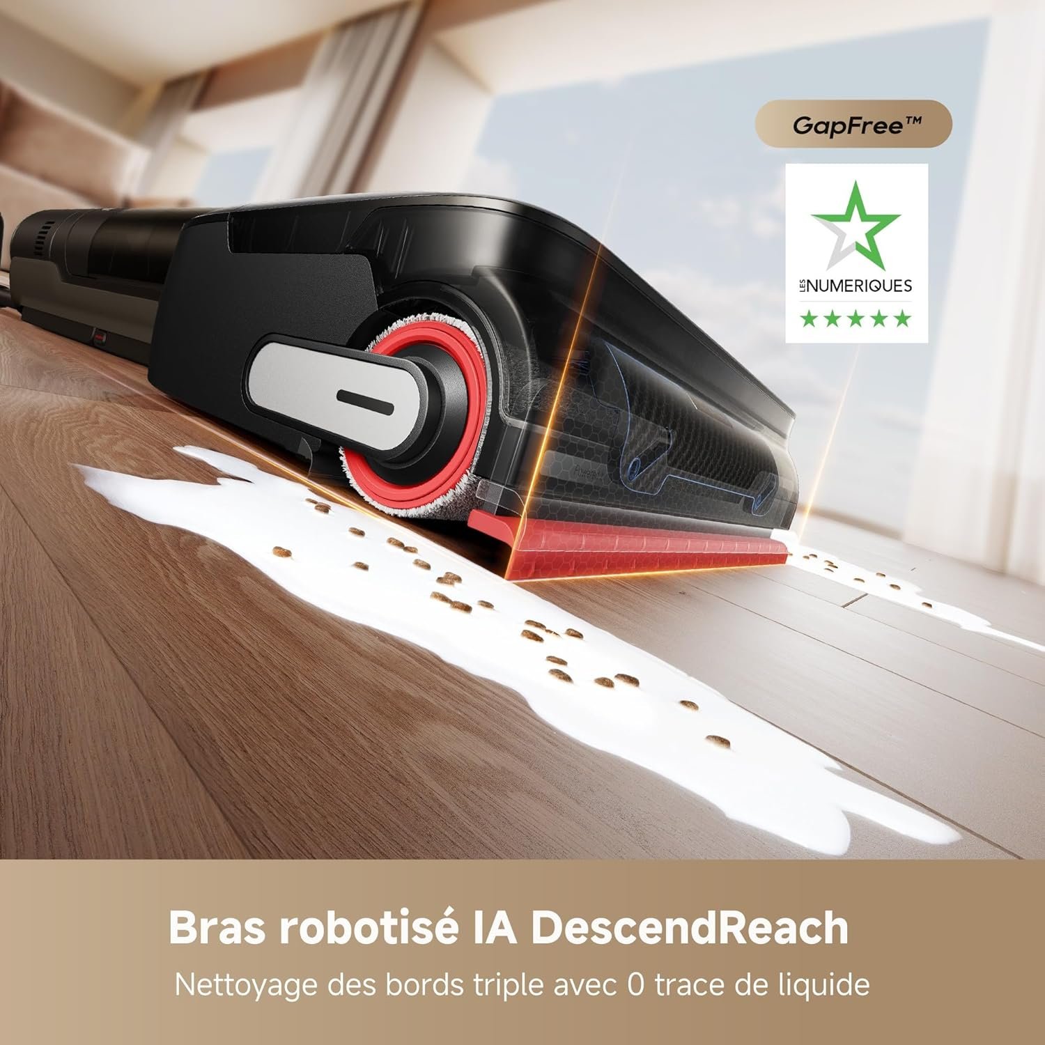 Dreame H15 Mix Aspirateur Laveur 7-en-1, Bras robotique IA, Nettoyage des Bords Triple, 23 000 Pa, Solution à Rapport Intelligent, Lavage de la Brosse à l’eau à 100 °C, séchage 5 Min à 90 °C, à Plat