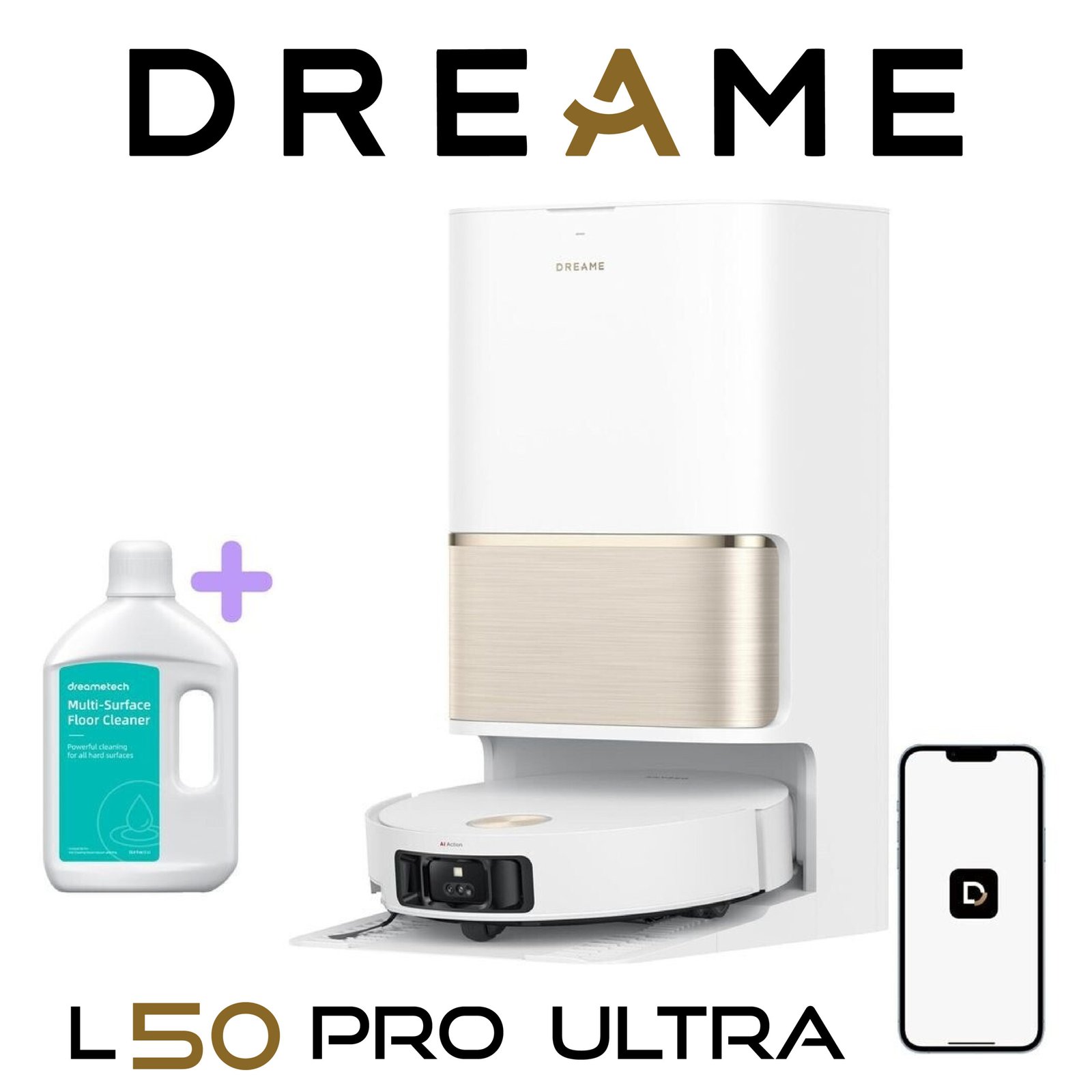 Dreame L50 Pro Ultra Robot Aspirateur Laveur avec vidage Automatique et Nettoyage Automatique des serpillières, évitement d’obstacles Intelligent et Navigation à 360°, Aspiration 19 500 Pa
