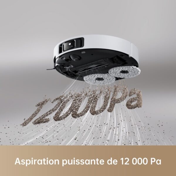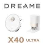 DREAME X40 Ultra Complete Robot Aspirateur avec Serpillière amovible et relevable, Brosse latérale surélevée,12 000 Pa,Serpillière et la Plaque de lavage avec de l’eau chaude à 70 C,Brosses relevables