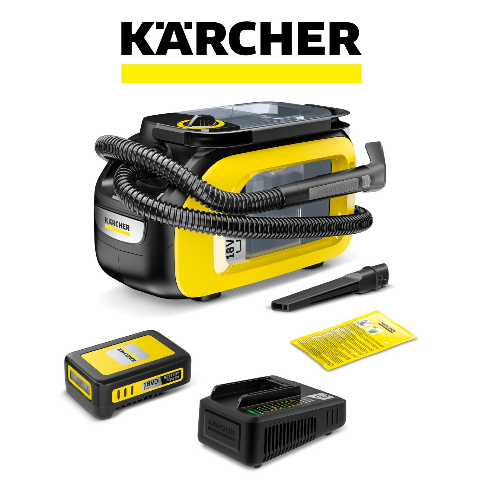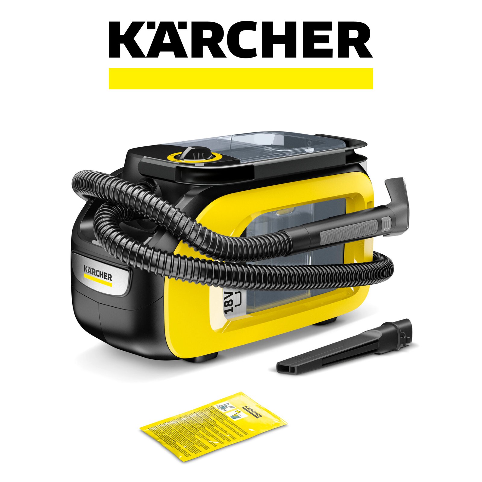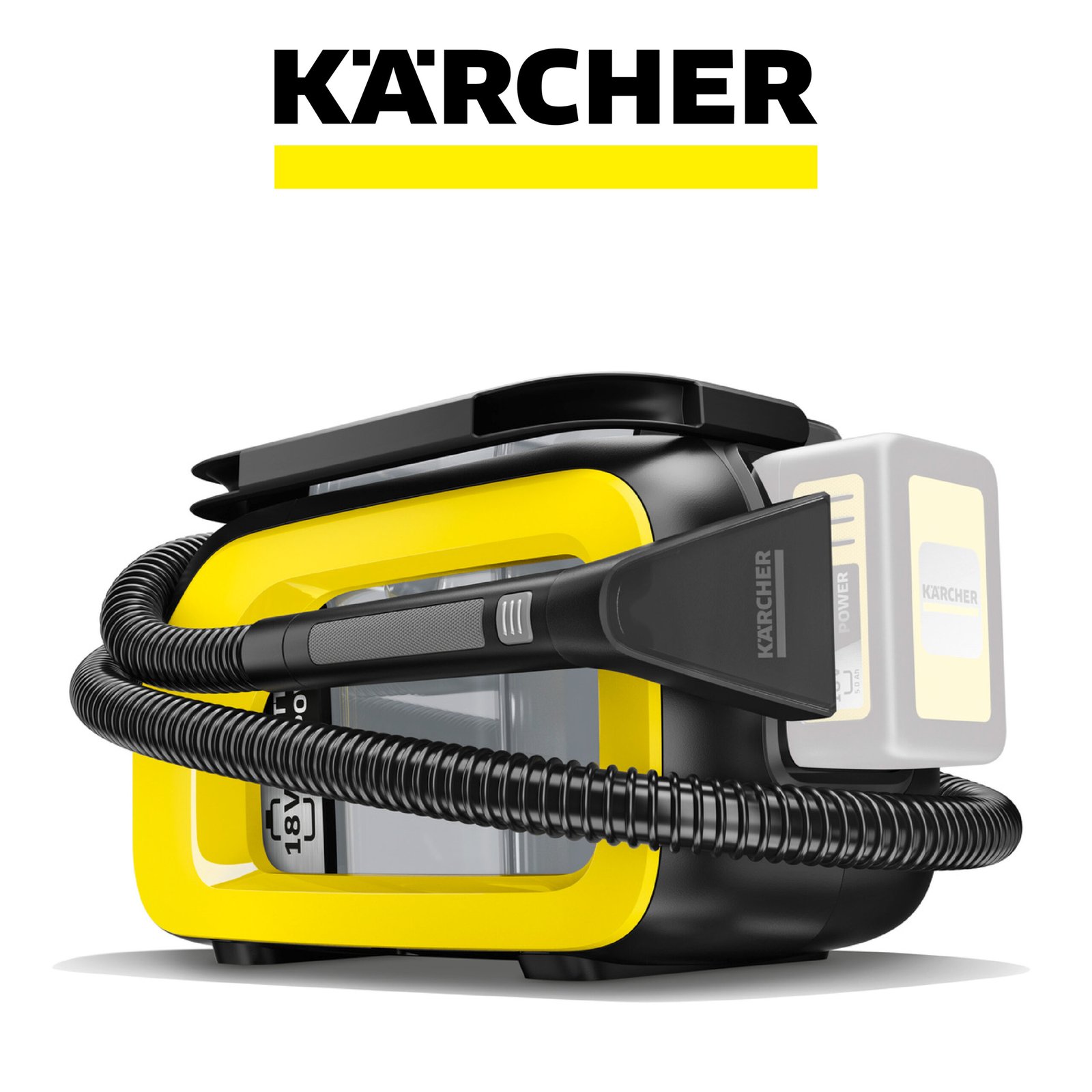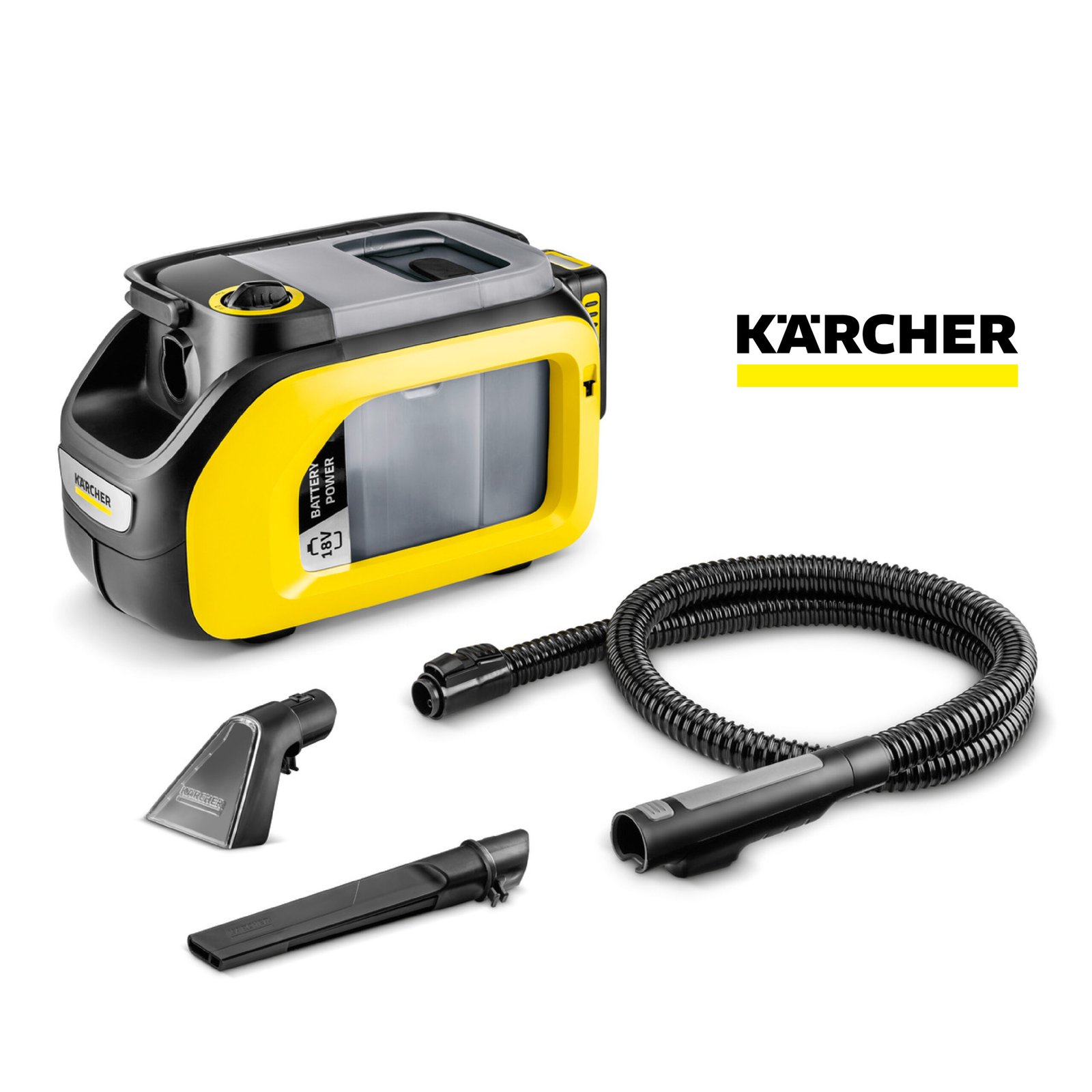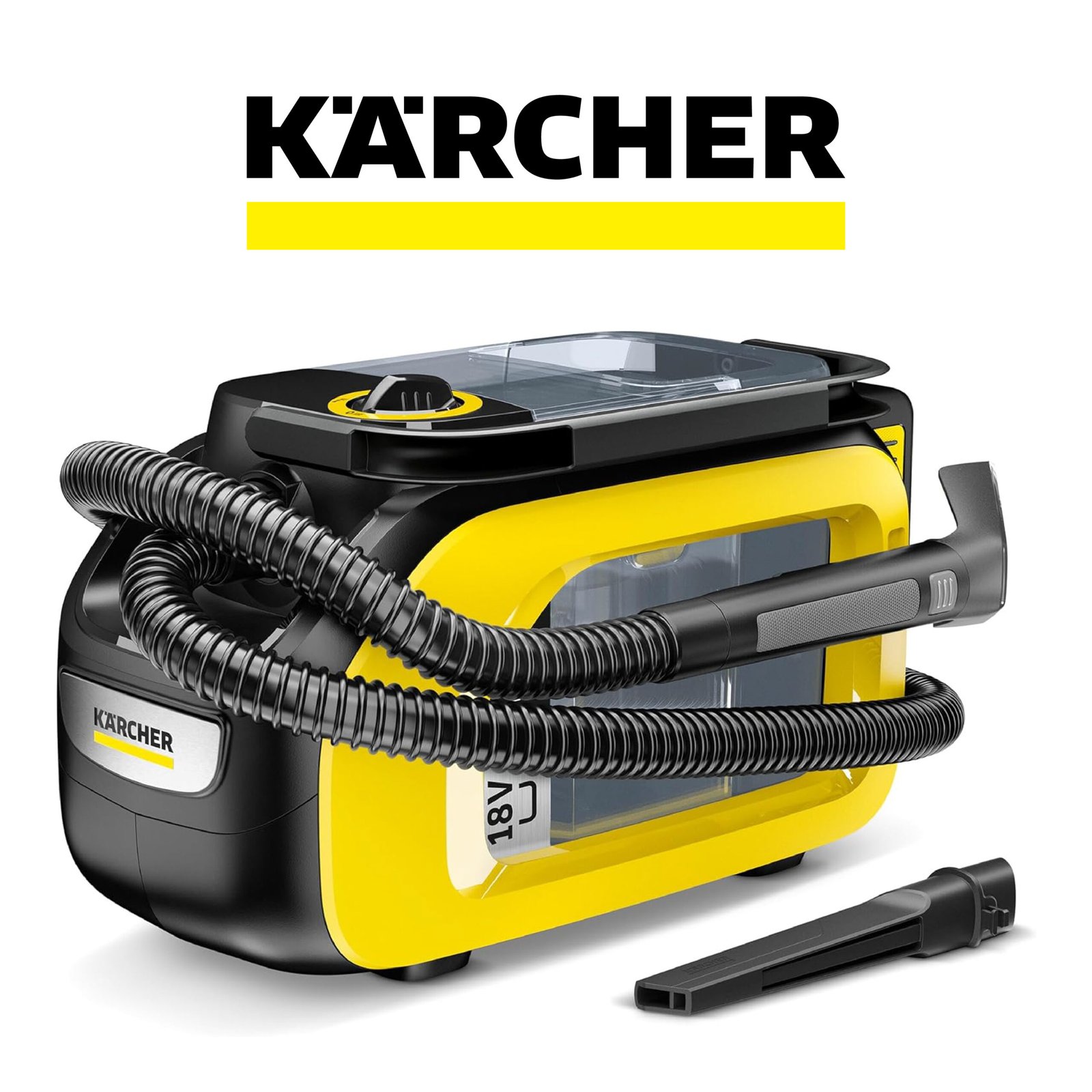 Kärcher SE 3-18 Compact Aspirateur Nettoyeur Canapé Moquette sans Fil, Puissance: 200 W, Surface: 6,5 m², Autonomie de la Batterie: 12-24 Min, Réservoir d’eau: 1,6 l, Batterie 18 V Non Incluse