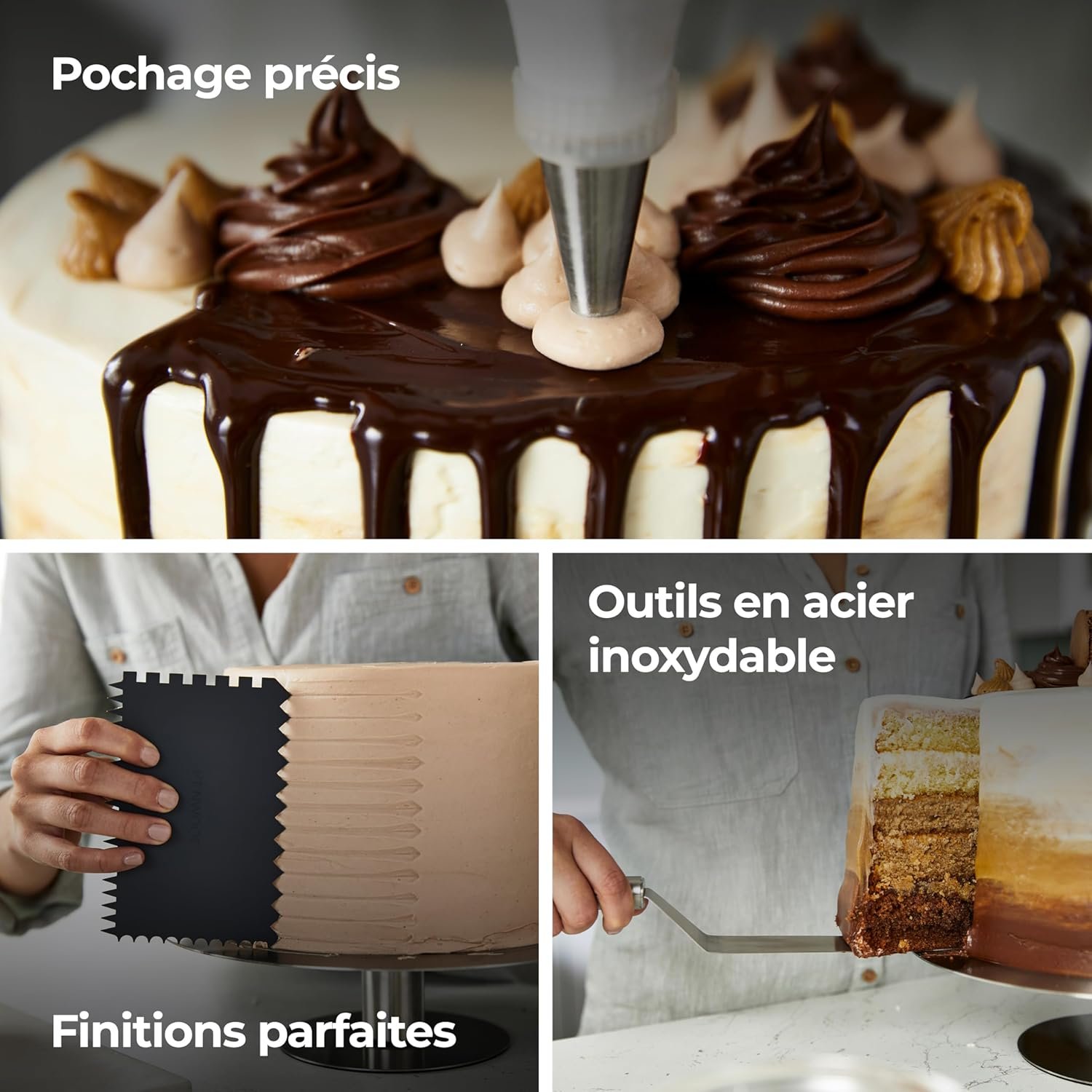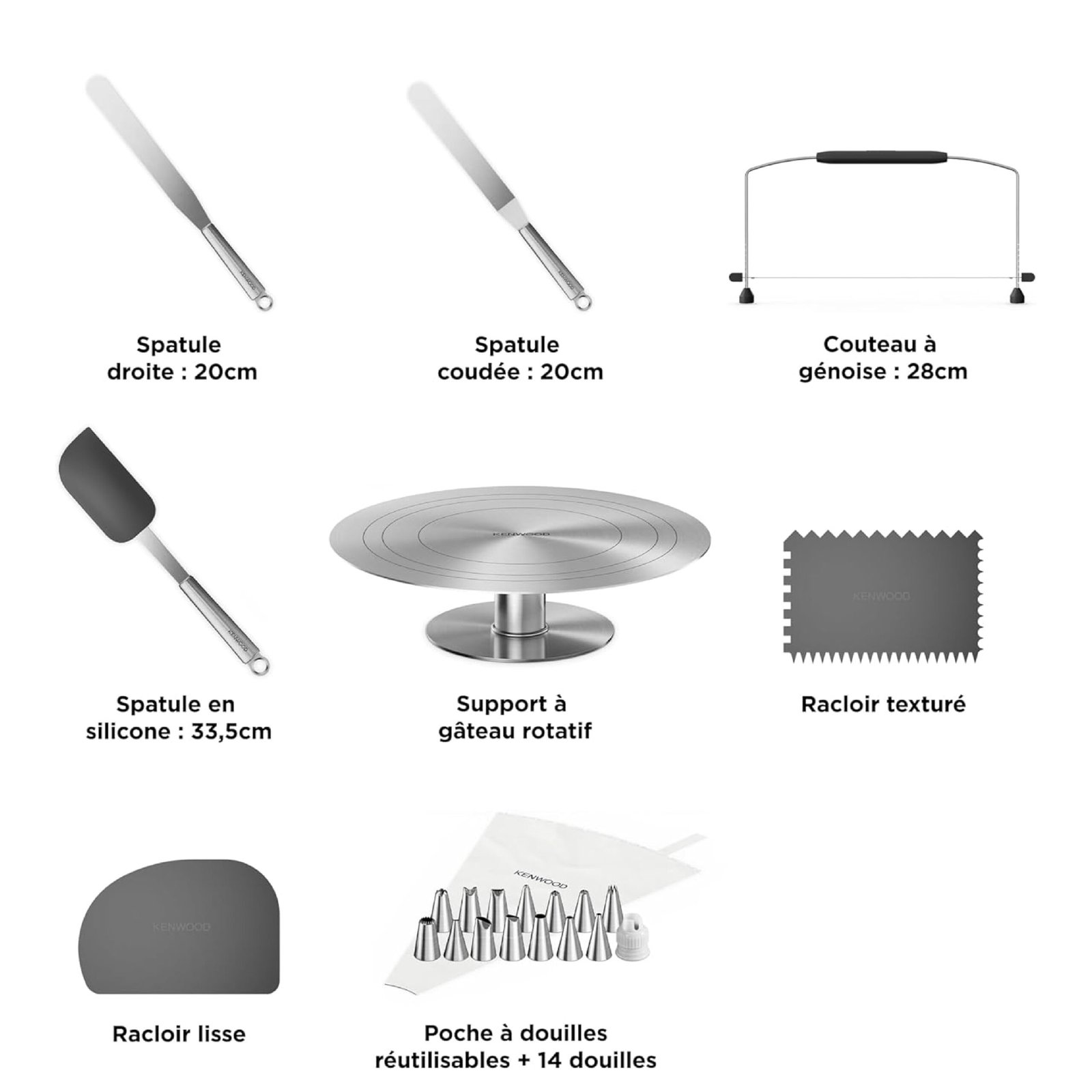 Kenwood KWSD100 Decorating Set de Pâtisserie, Plateau à Gâteaux en acier inoxydable, spatules, sac à douille et manchon de décoration en acier inoxydable, Argenté