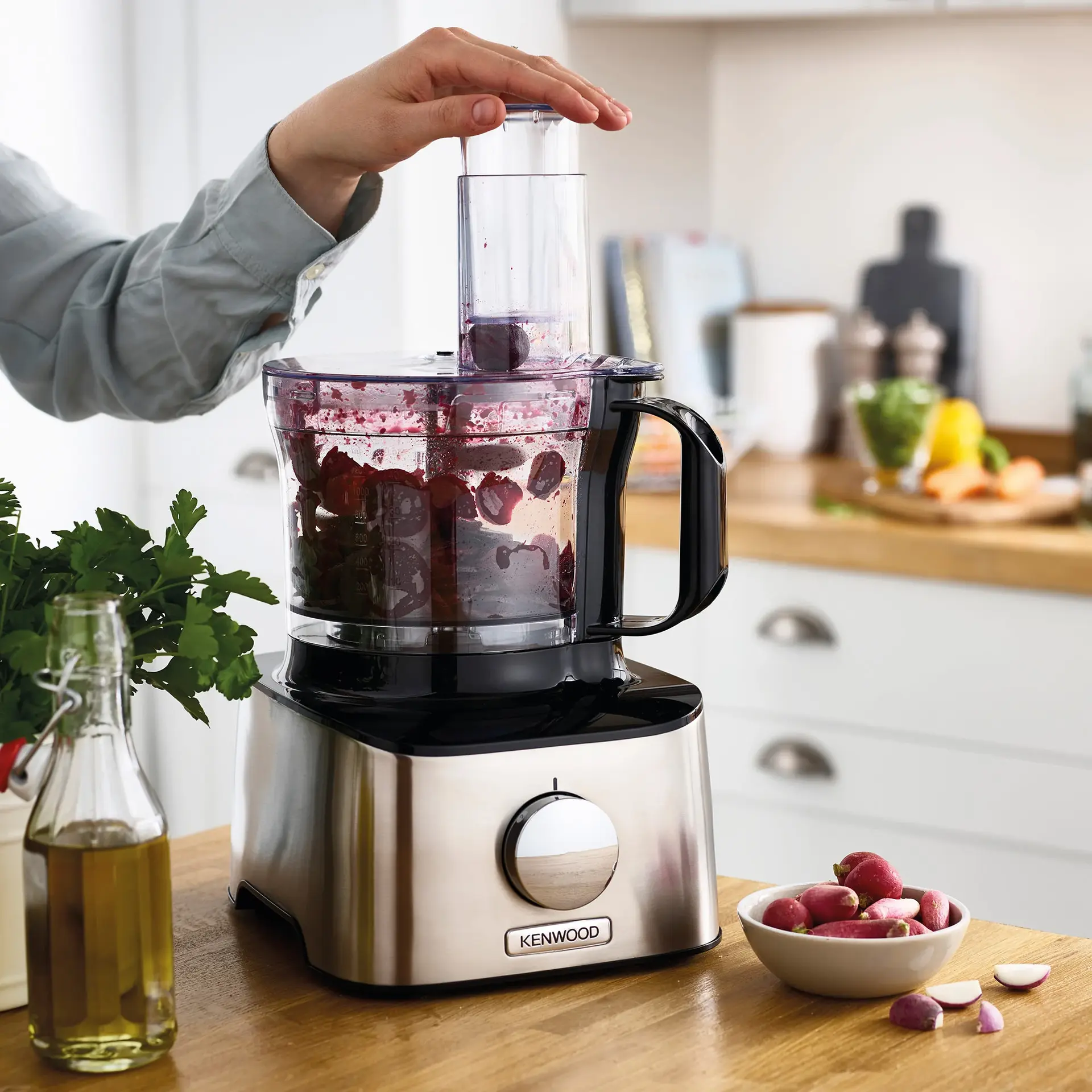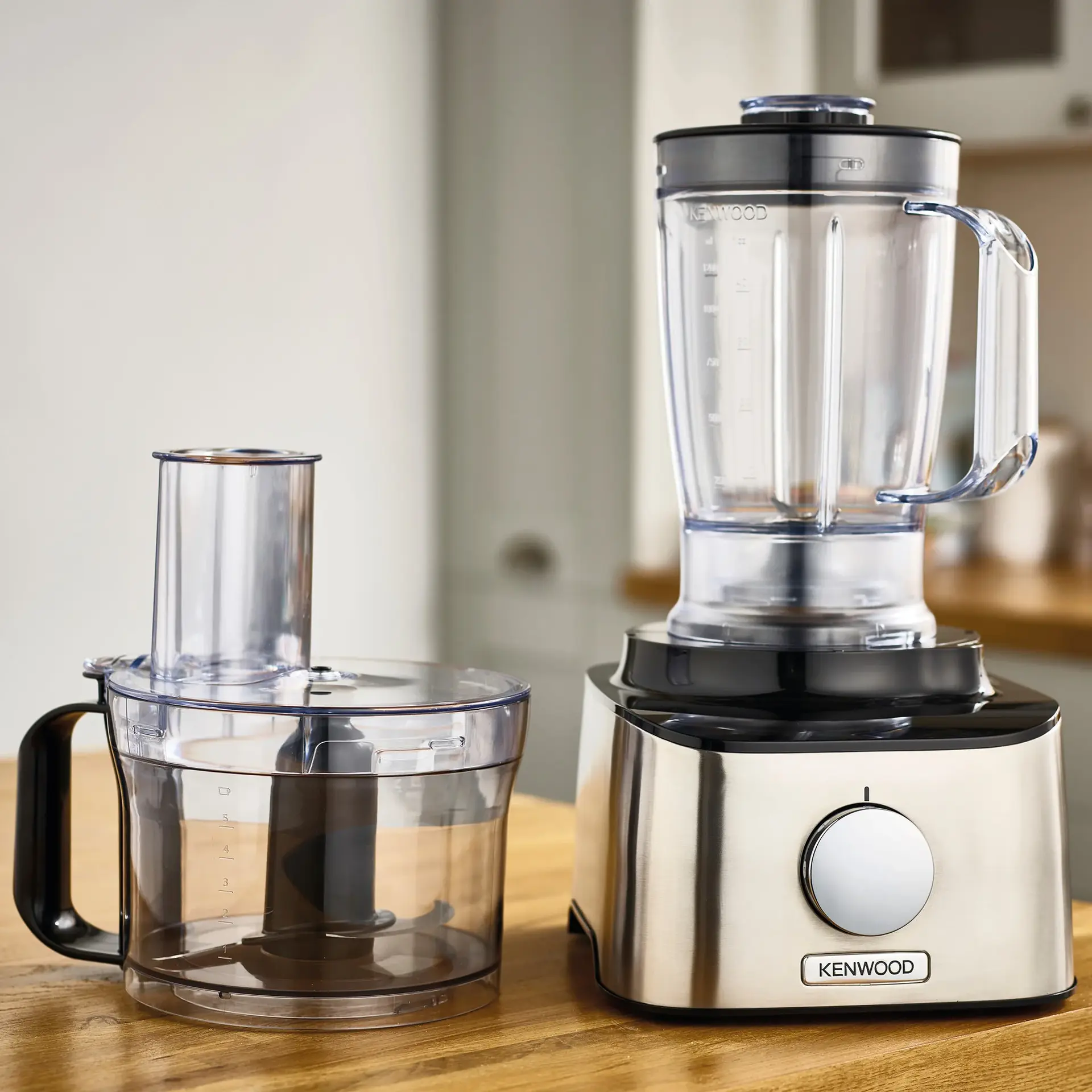 Kenwood Multipro Compact FDM304SS Robot de cuisine compact, puissant avec récipient de travail de 2,1 l, bol mélangeur acrylique, coupe-cubes, boîtier en métal, 800 W, argenté