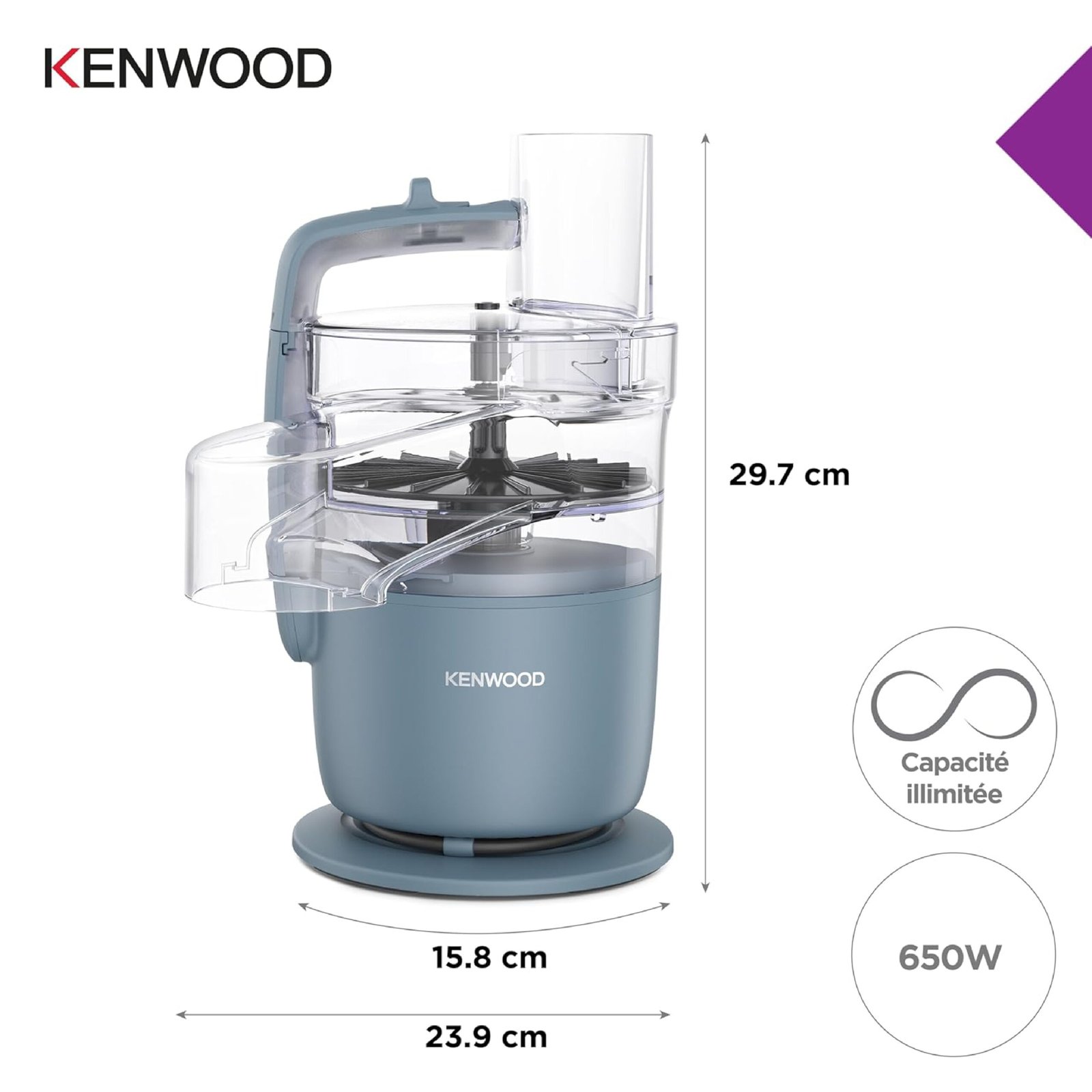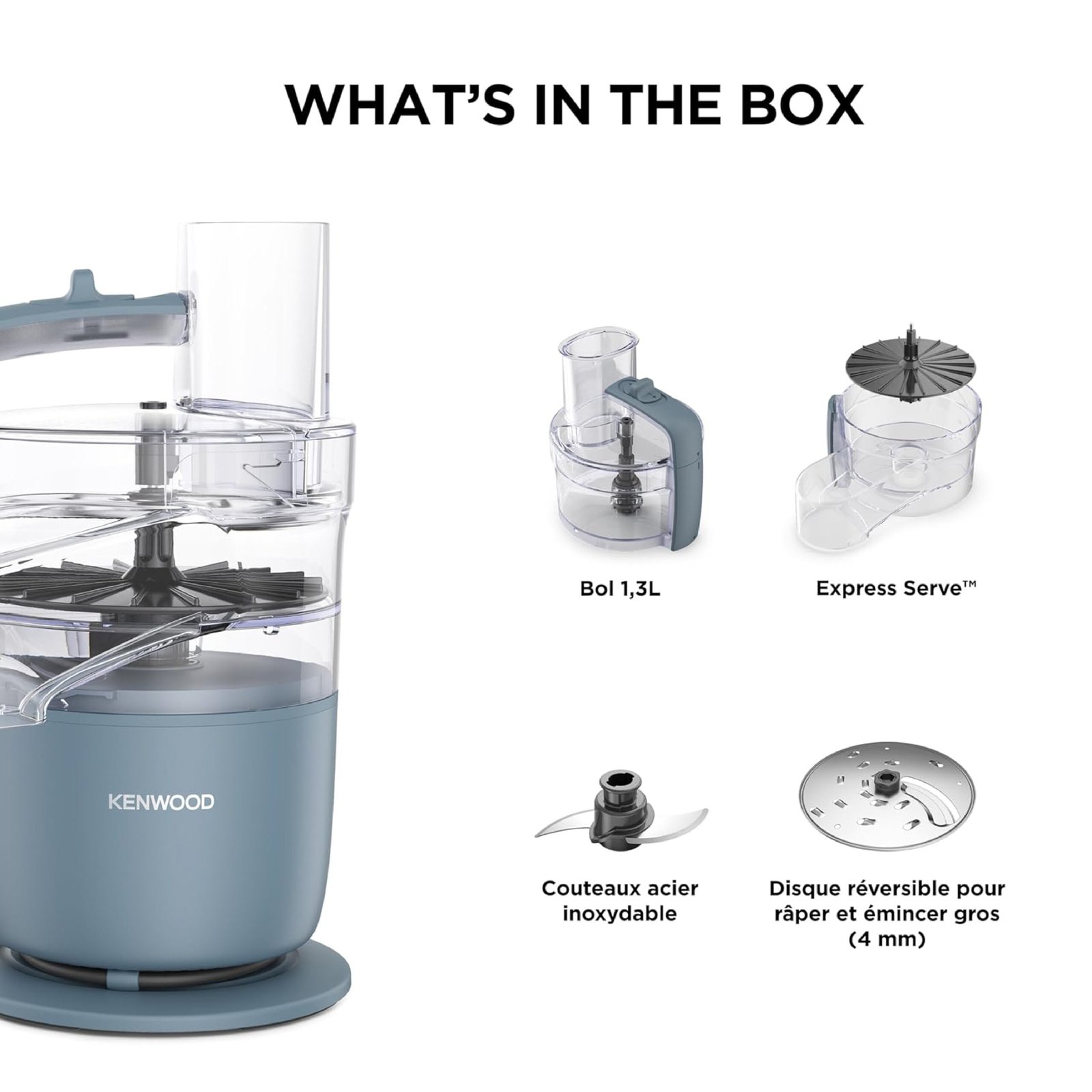 Kenwood MultiPro Go FDP22.130GY, Processeur Alimentaire Compact de Cuisine de 30cm de Haut, pour Couper, Râper, Mixer et Pétrir la Pâte, avec Express-Serve dans la Poêle, Récipient 1,3 l, 650W, Bleu