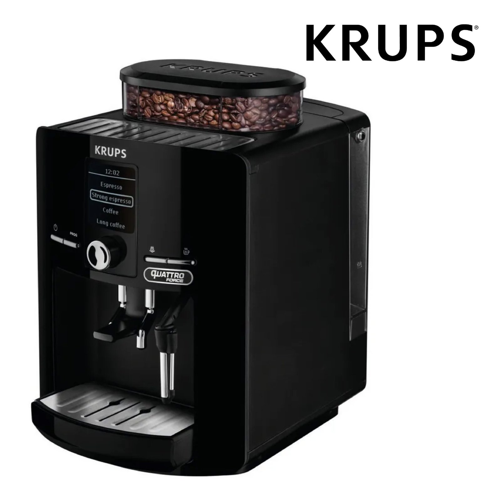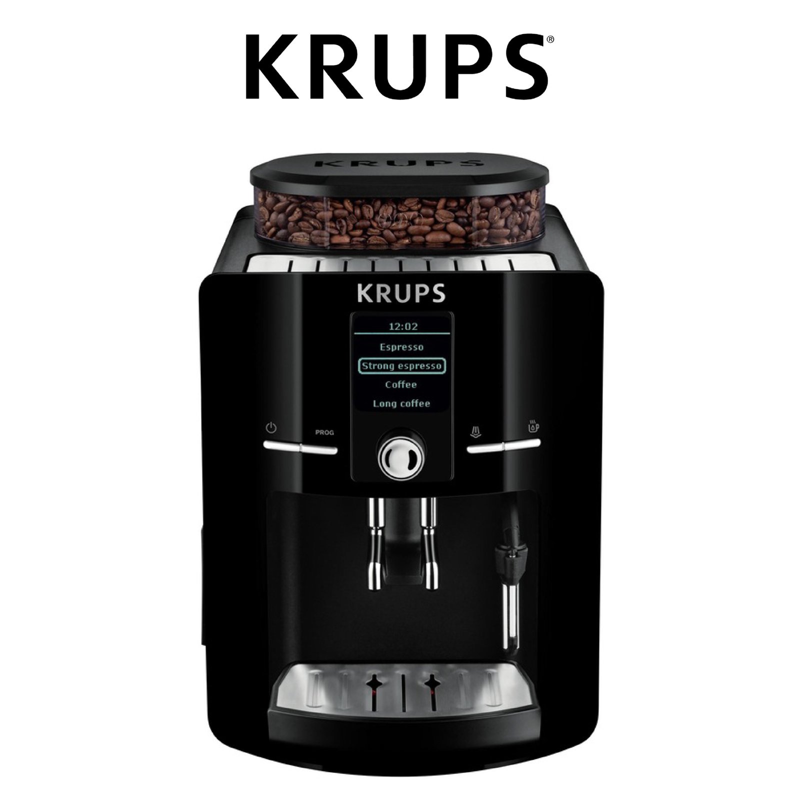 Krups Machine à café grain, 2 expressos simultanés, Ecran LCD, Cafetière espresso compacte, Nettoyage automatique, Buse vapeur pour Cappuccino Ref: EA82