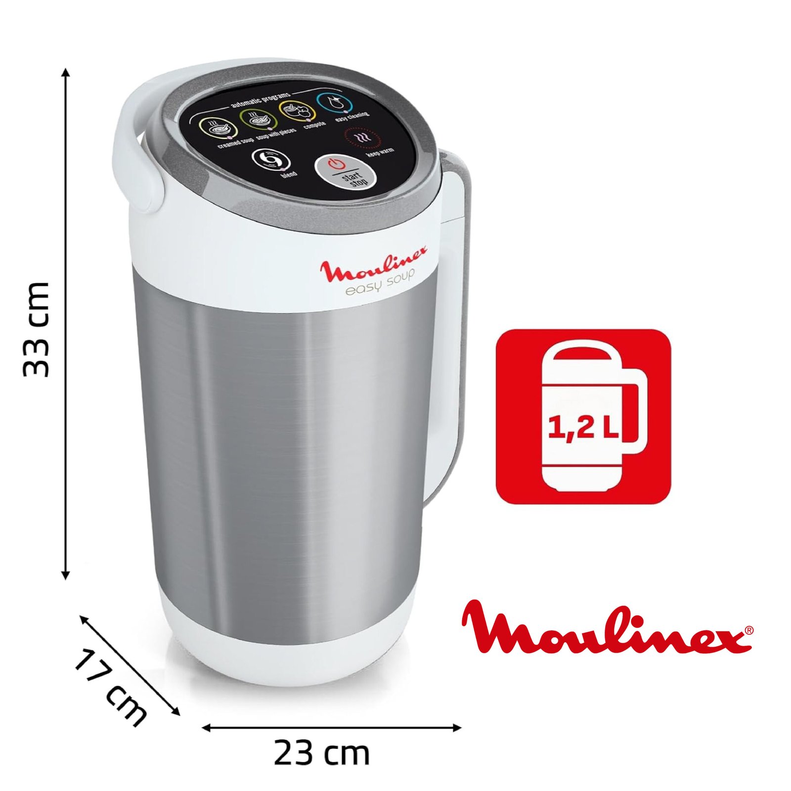 Moulinex Blender chauffant, 1000 W, Capacité 1.2 L, 5 programmes automatiques, Double paroi, Soupe, Velouté, Compote, Smoothie, Maintien au Chaud, Easy Soup silver LM841110