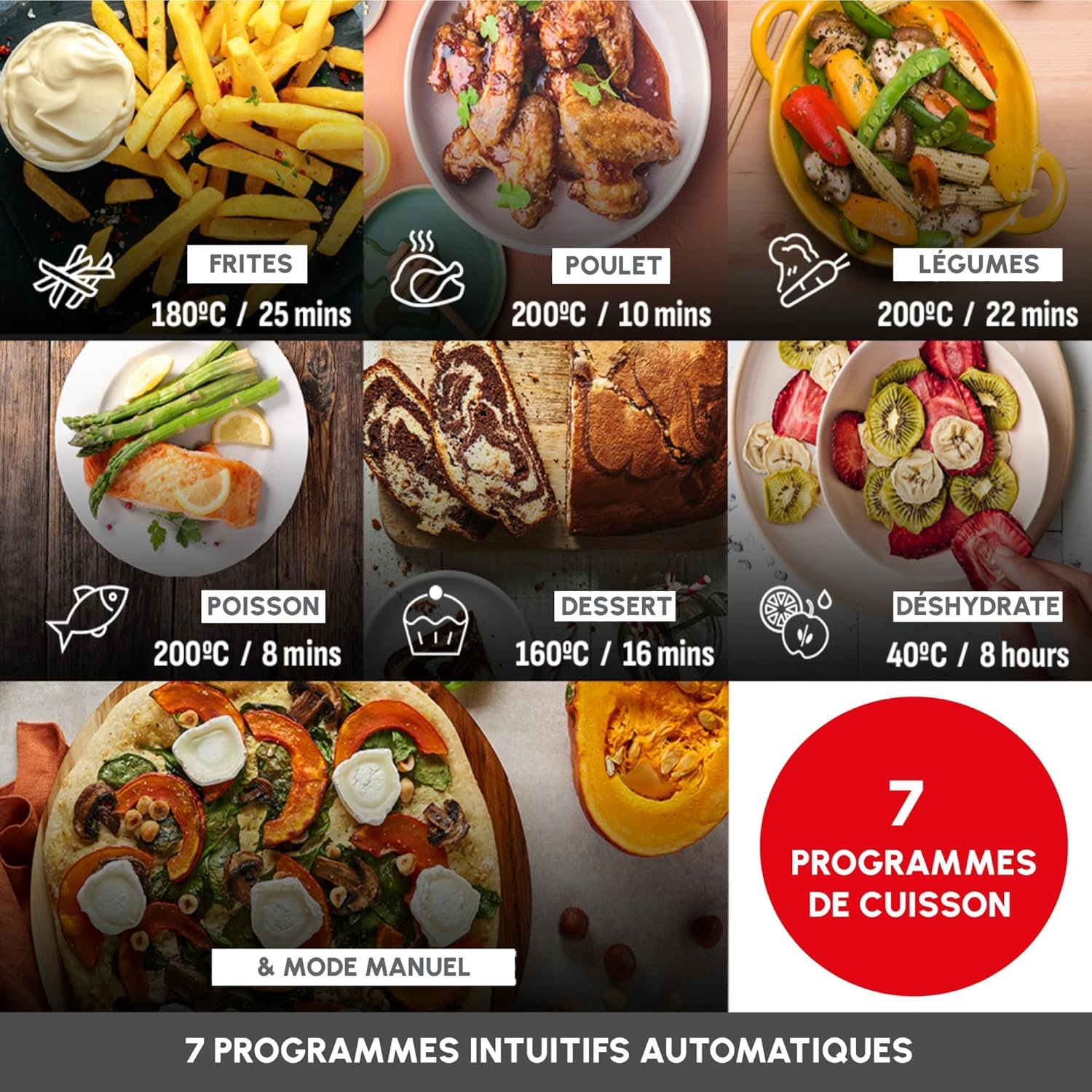 Moulinex Dual Easy Fry XXL, air fryer 2 tiroirs, jusqu’à 10personnes, 7programmes prédéfinis, EZ942BF0, Gris Foncé