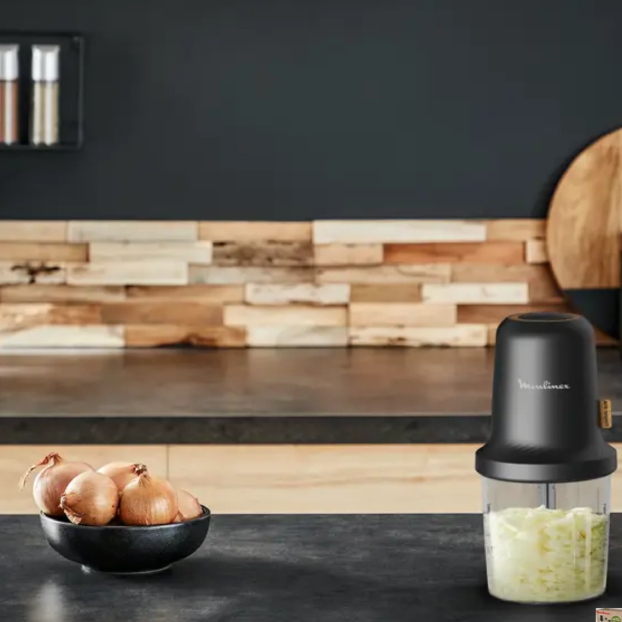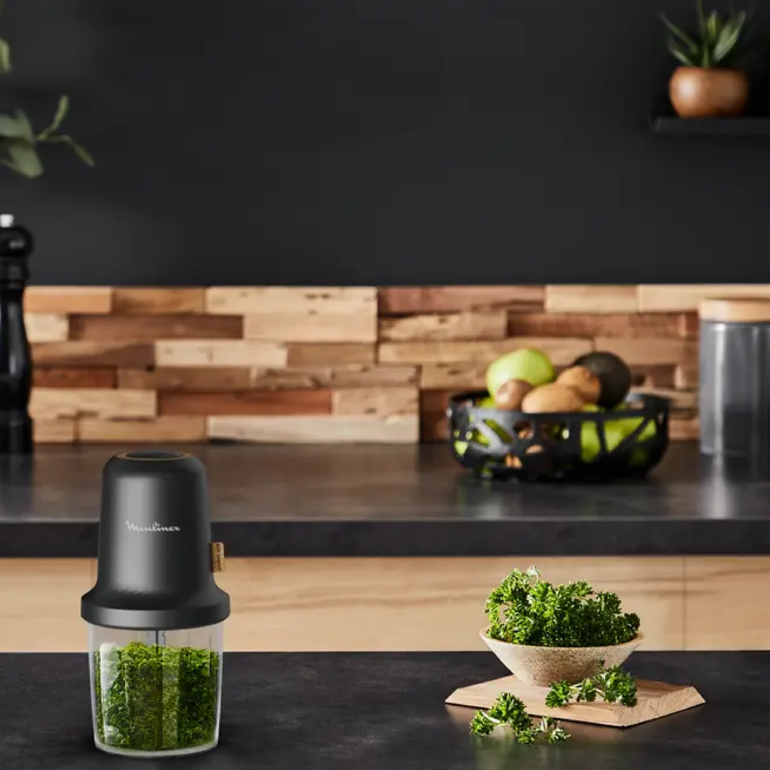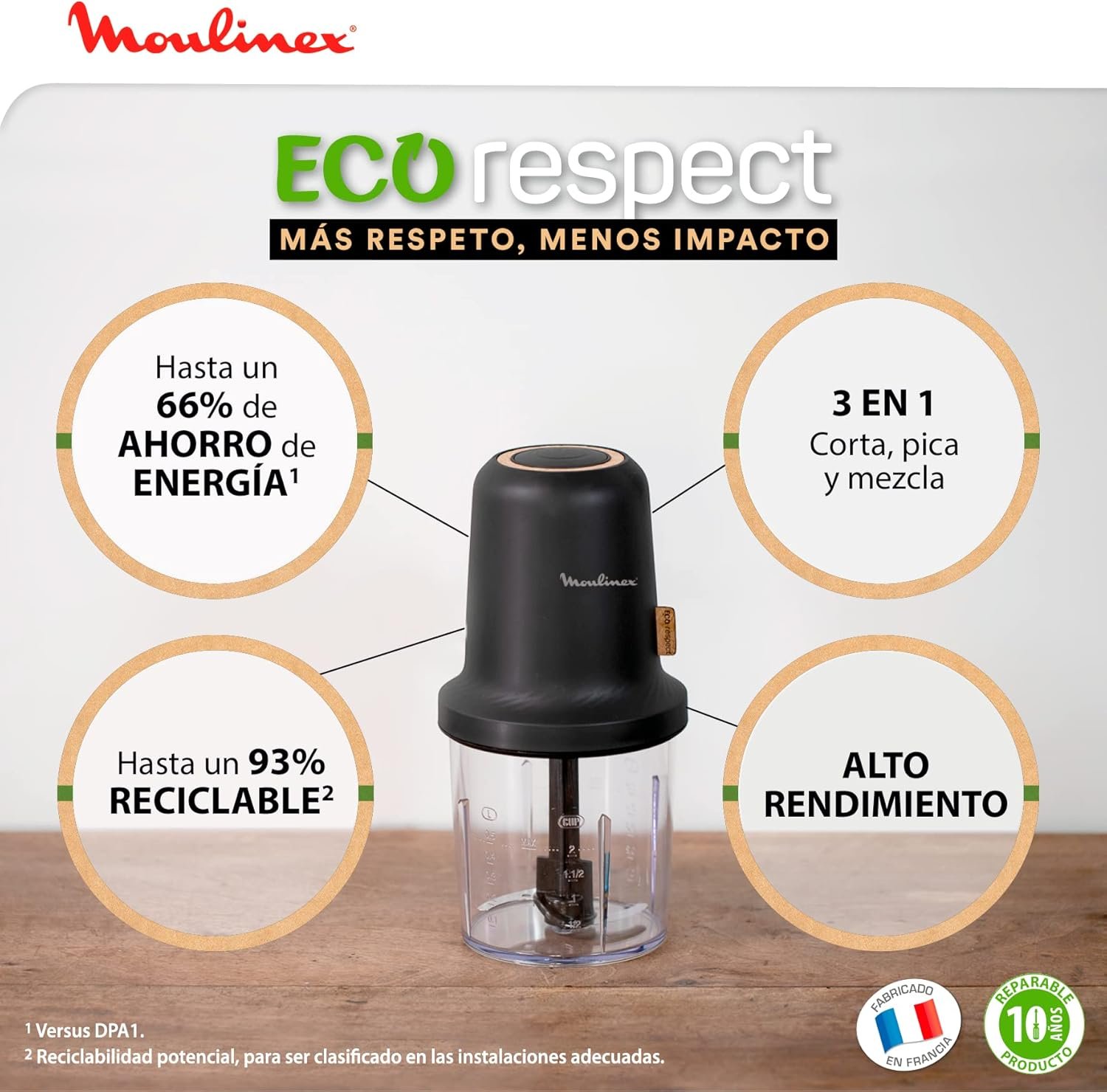 Moulinex Eco Respect hachoir, Design écologique, Oignons, ail, herbes, sauces, 0,5 L, 2 lames, 500 W, Fabriqué en France AT80E810