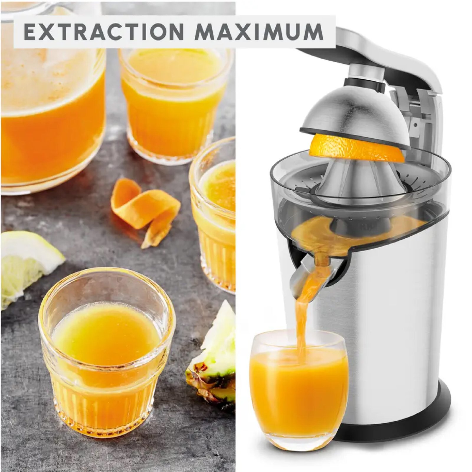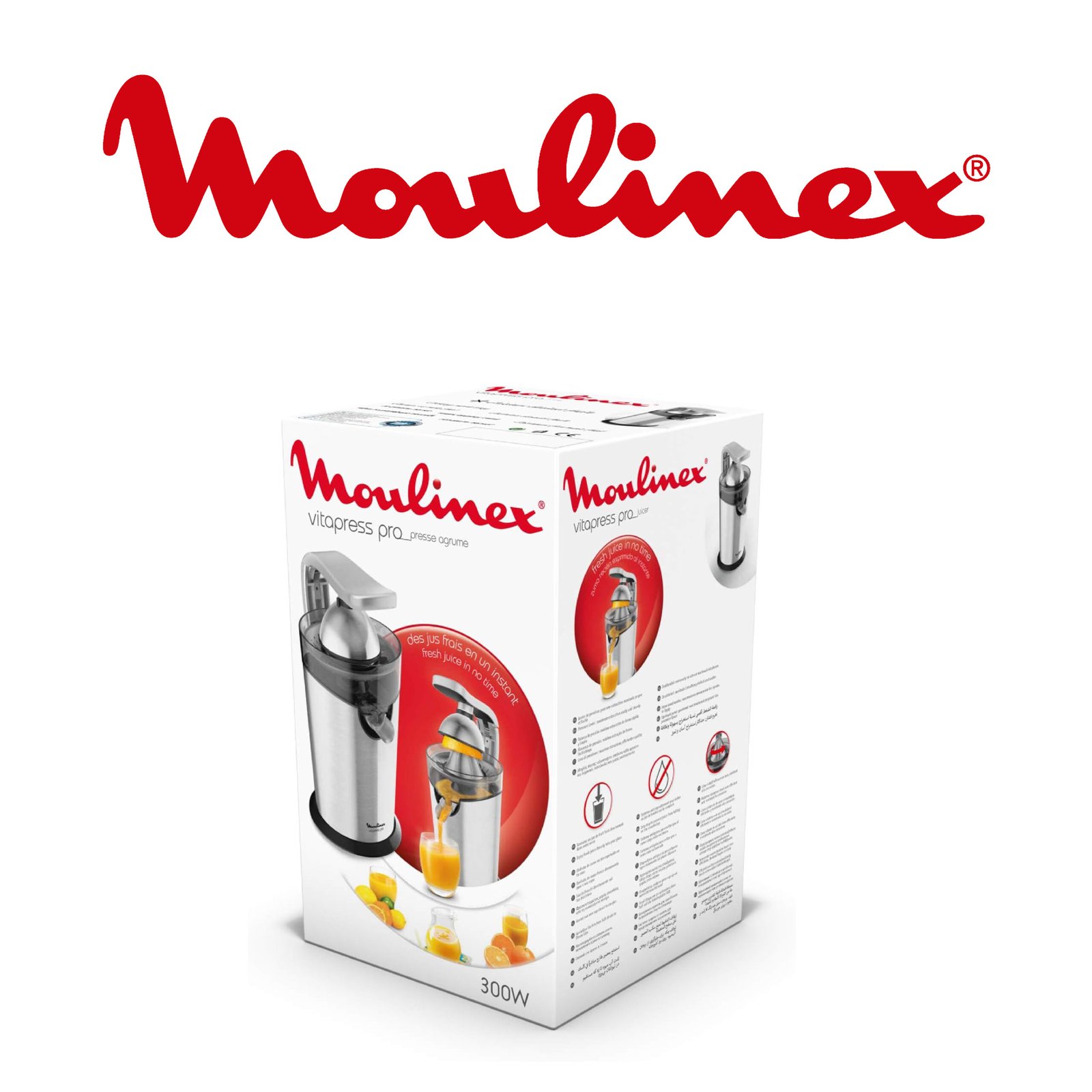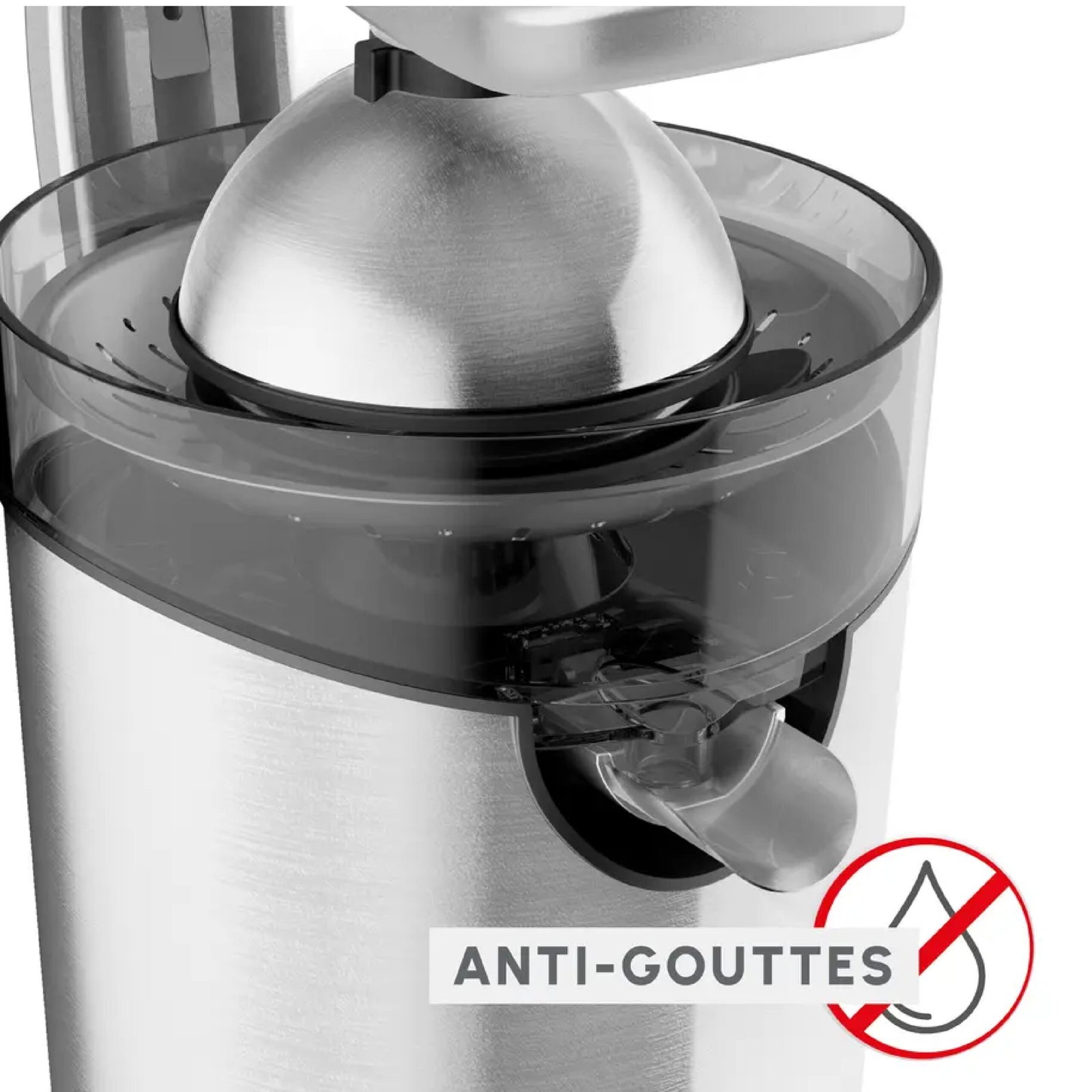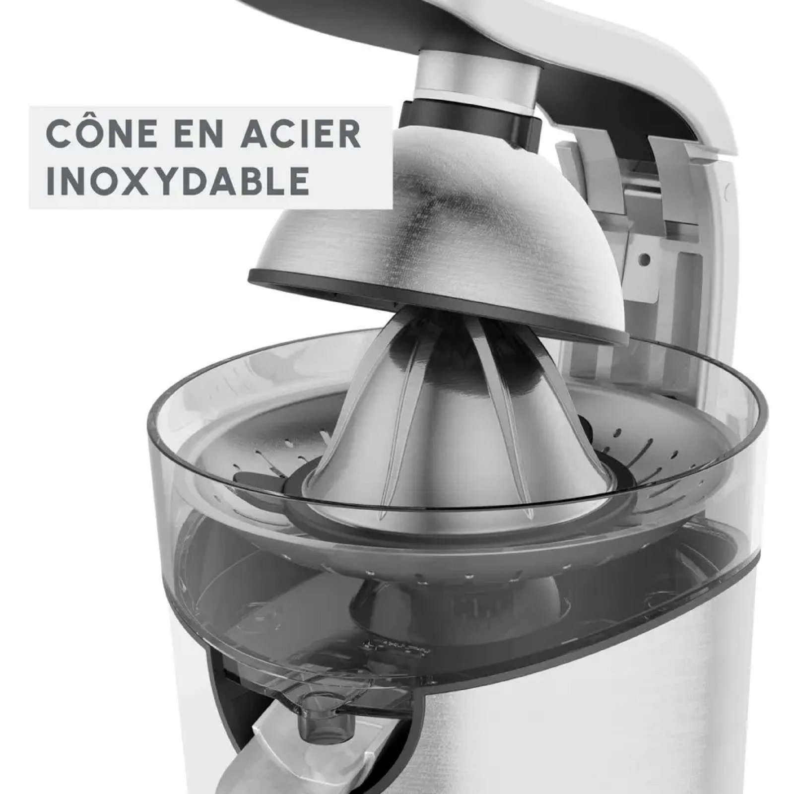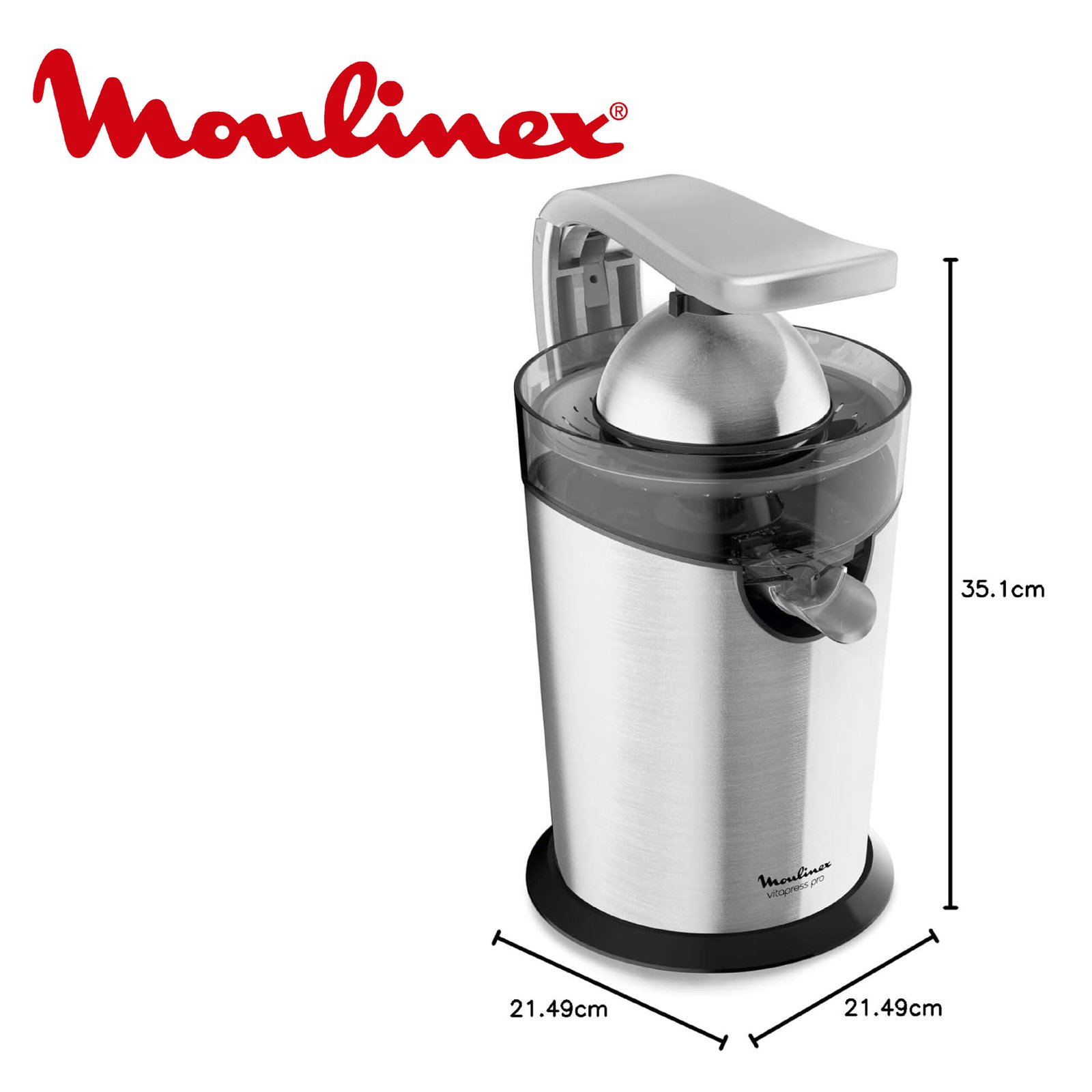 Moulinex Presse-agrumes électrique, 300 W, Système anti-goutte, Levier à pression, Extracteur de jus, Cône acier inoxydable, Système Start/Stop automatique, Vitapress Pro PC700D10