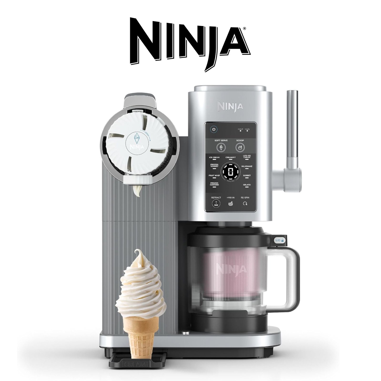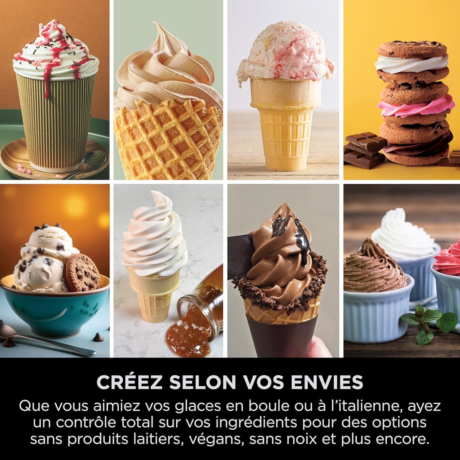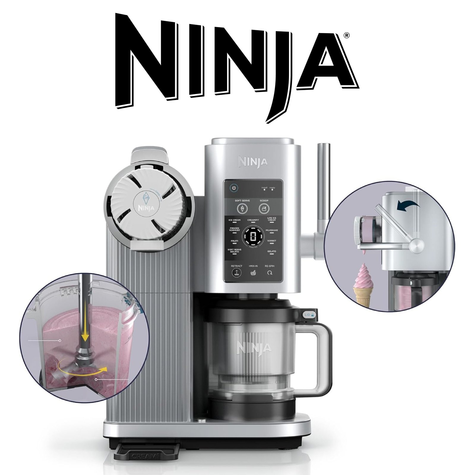 NINJA CREAMi Scoop & Swirl Machine a Glace et Sorbetière, 13 modes, Machine a glaces l’italienne Intégré, Avec 2 pots, Pièces Amovibles Lavables au Lave-Vaisselle, Gris platine NC701EU