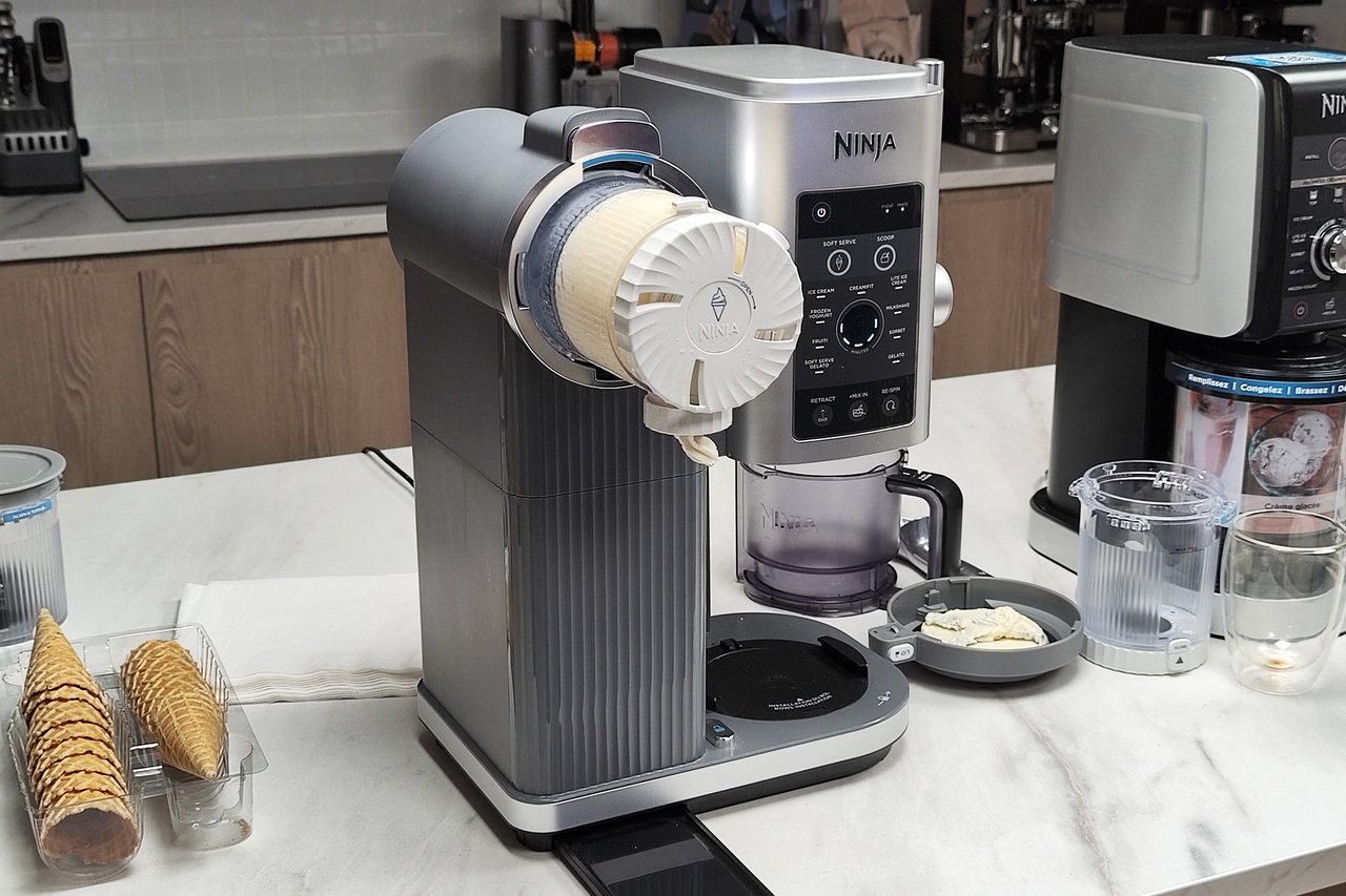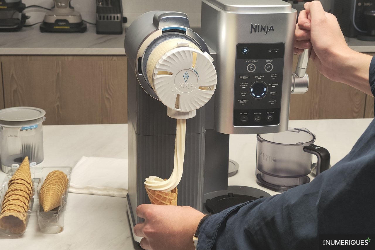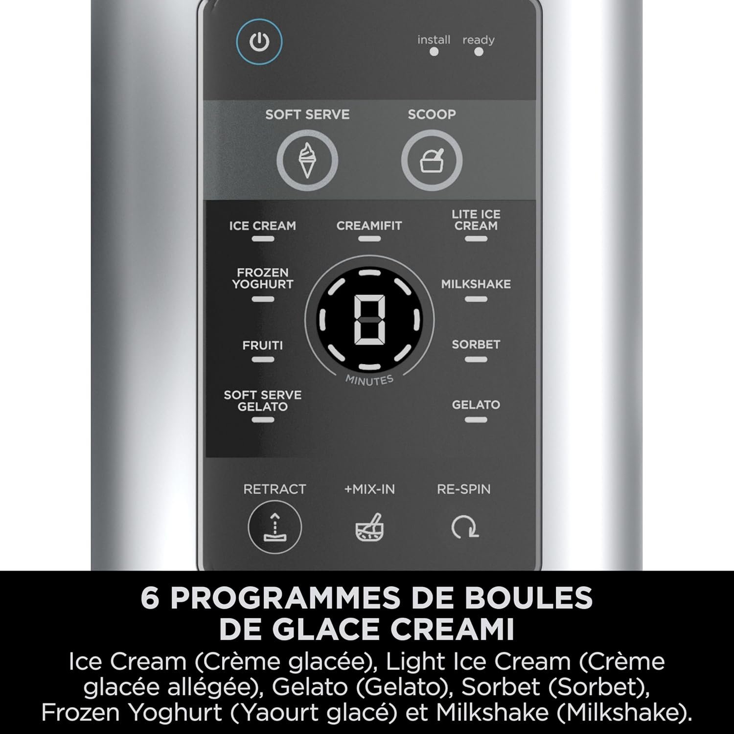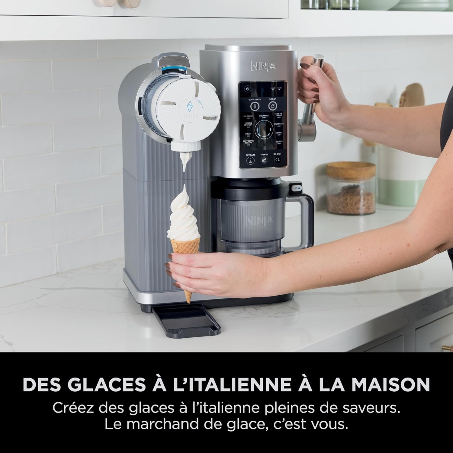 NINJA CREAMi Scoop & Swirl Machine a Glace et Sorbetière, 13 modes, Machine a glaces l’italienne Intégré, Avec 2 pots, Pièces Amovibles Lavables au Lave-Vaisselle, Gris platine NC701EU