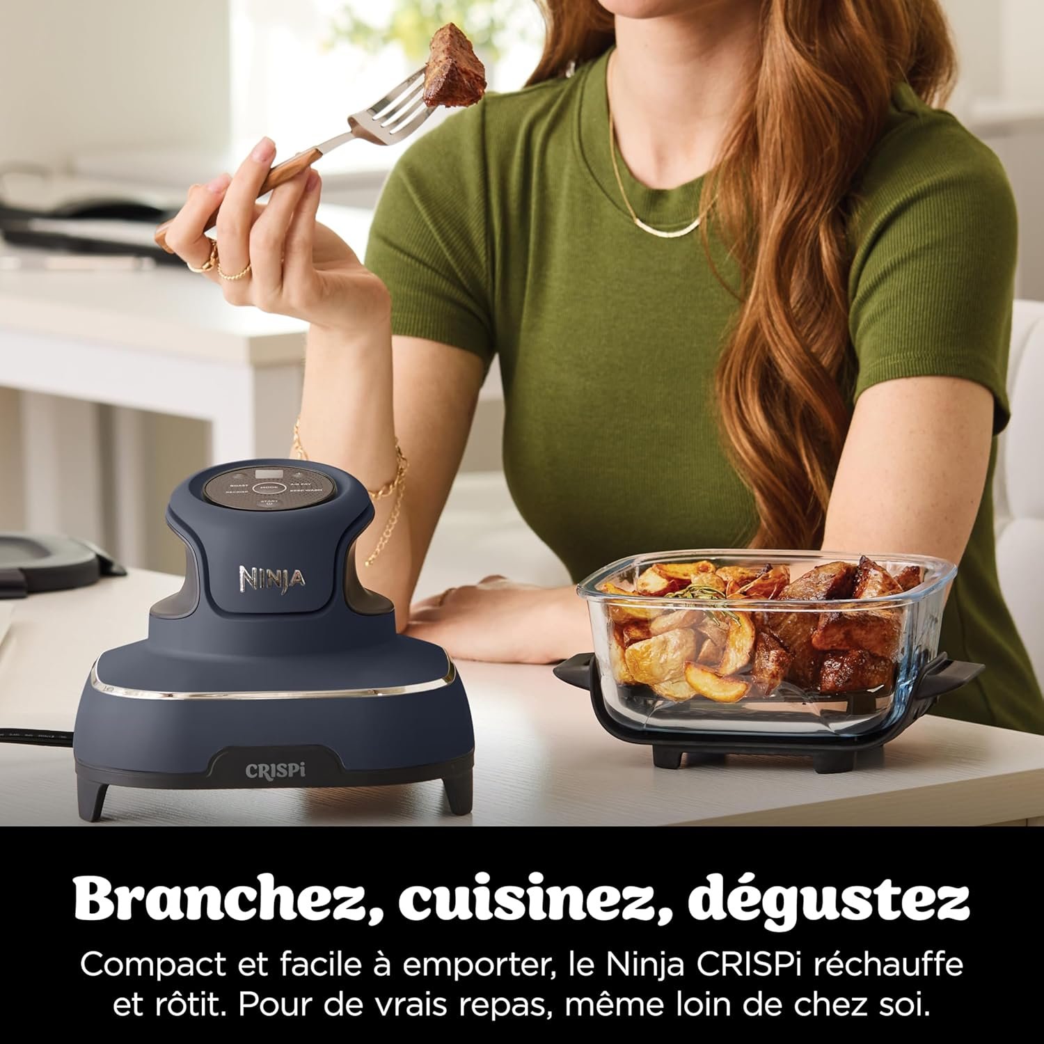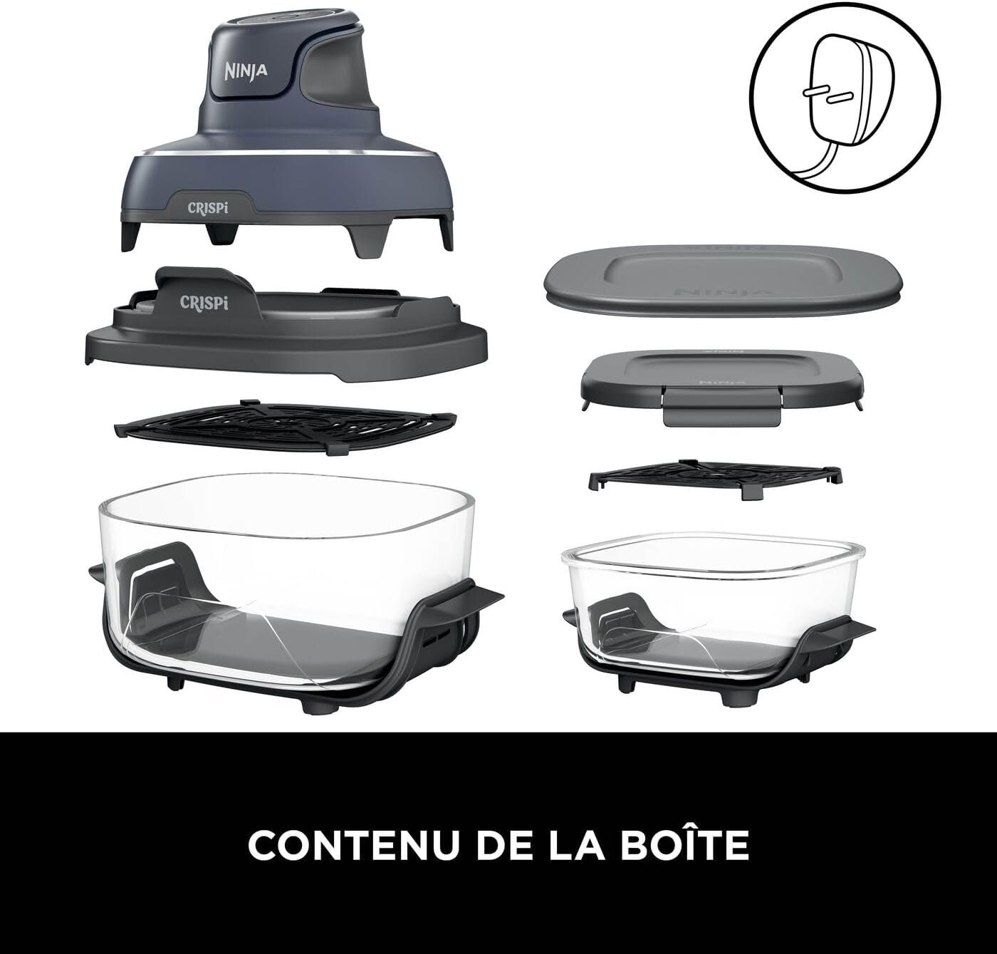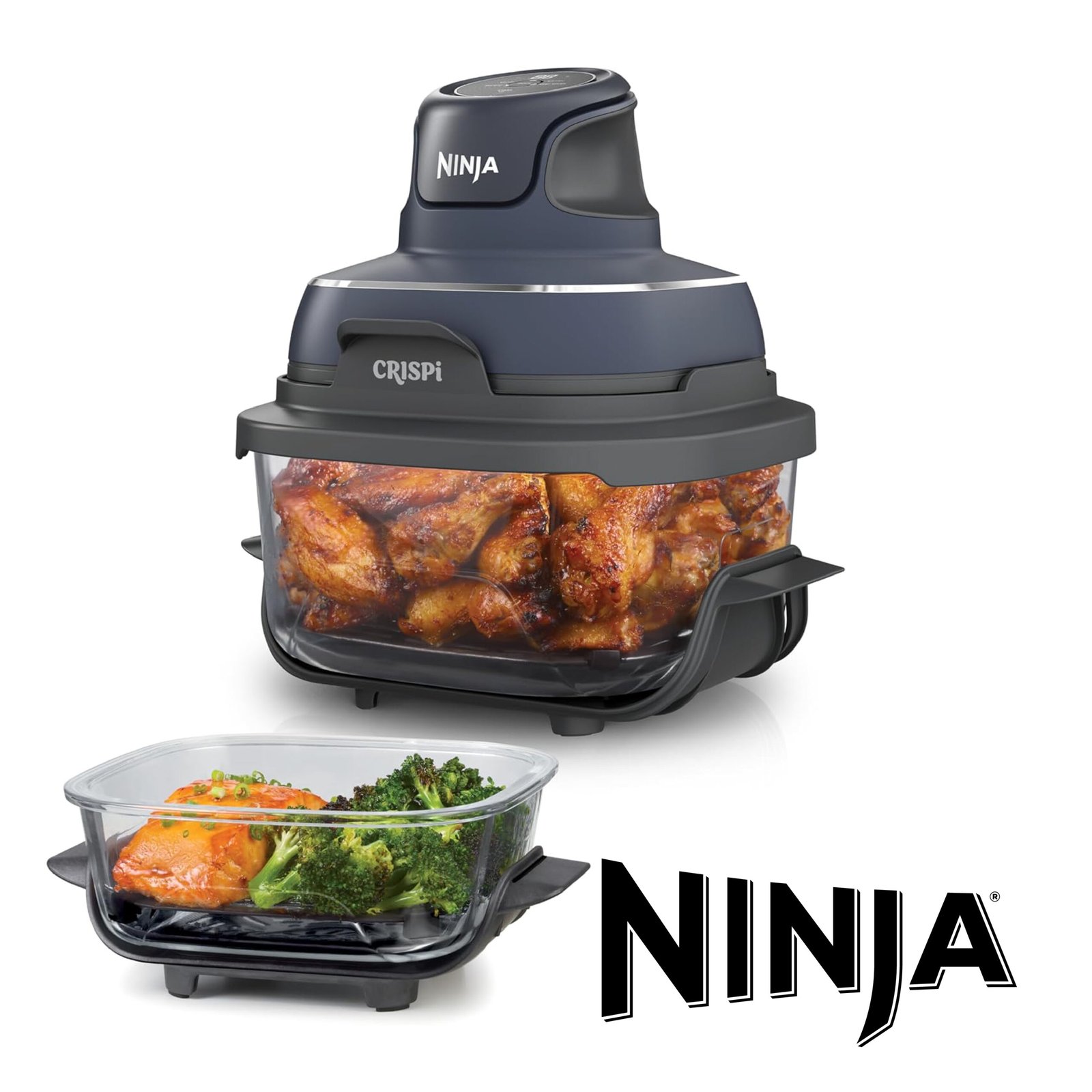 NINJA CRISPi SANS PFOA Air Fryer Design Compact, 2 Capacités Interchangeables en Verre avec Couvercles, Capacité 3,8L ou 1,4L, 4-en-1, Pièces Amovibles lavables au lave-vaisselle, Gris FN101EUGY