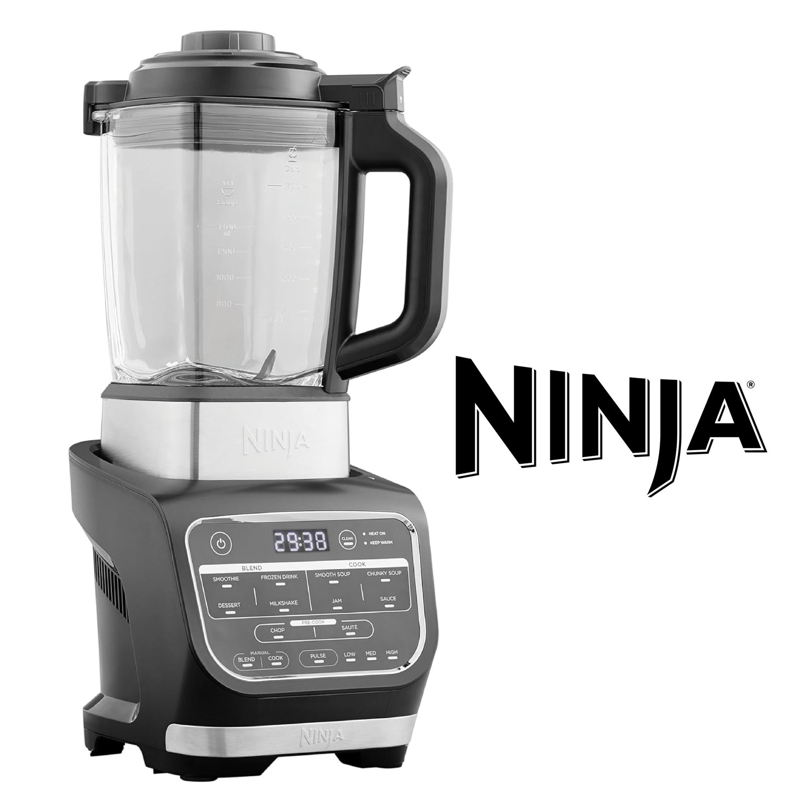 Ninja Foodi Blender Chauffant, 1000W, Capacité 1,7L, 10 Programmes Automatiques, Soupe, Velouté, Compote, Confiture, Smoothie, Brosse et Programme de Nettoyage, Noir HB150EU