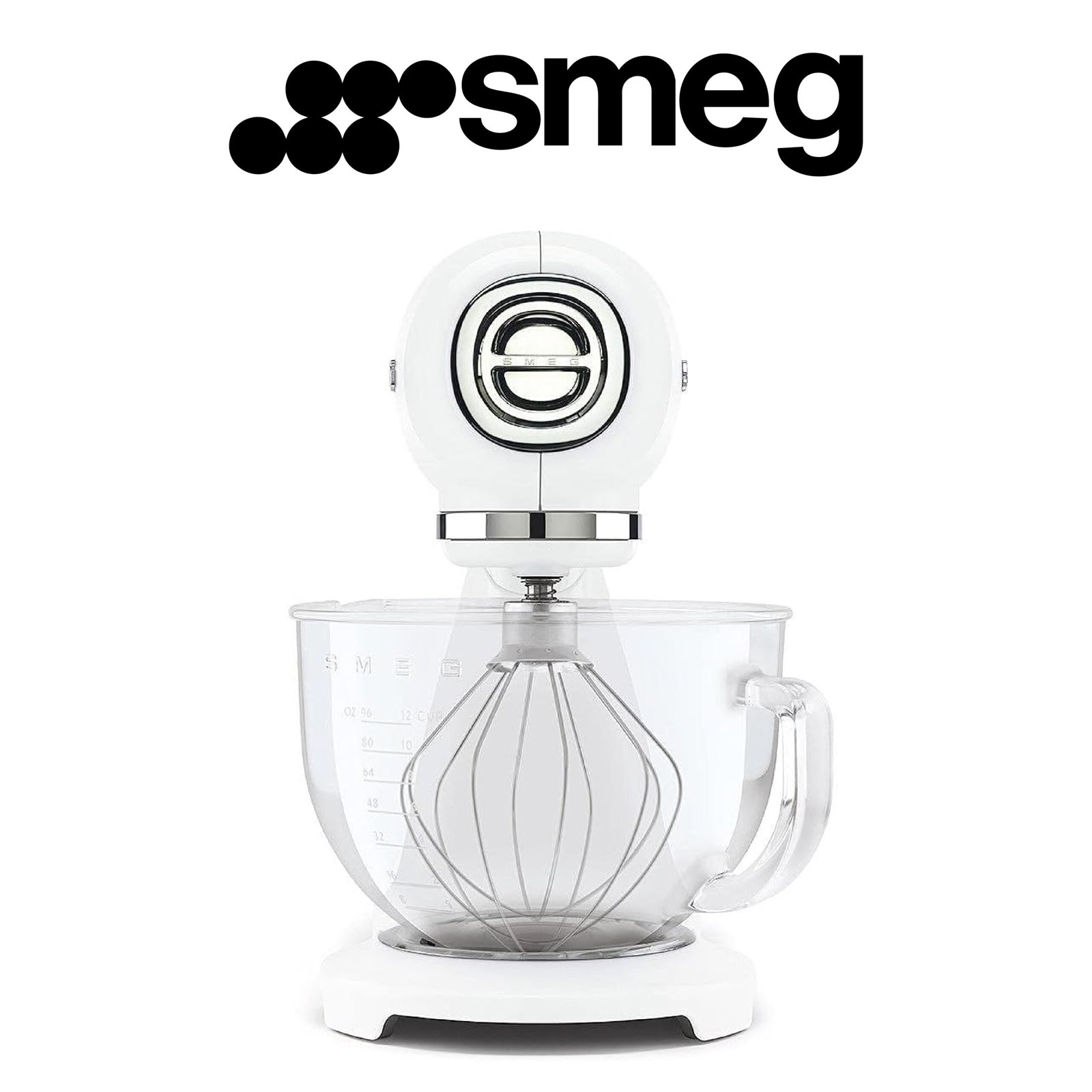 Smeg, Robot Pâtissier SMF13WHEU, 10 Niveaux de Vitesse, Mise en Marche Progressive, Bol en Verre de 4,8 L, Verrouillage Moteur de Sécurité, Accessoires Inclus, 800 W, Blanc