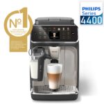 Philips Series 4400 Machine à expresso LatteGo entièrement automatique, technologie SilentBrew, démarrage rapide, café aromatique de haricots fraîchement moulus, 12 boissons chaudes et glacées, chrome
