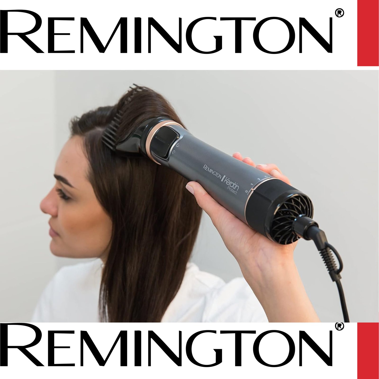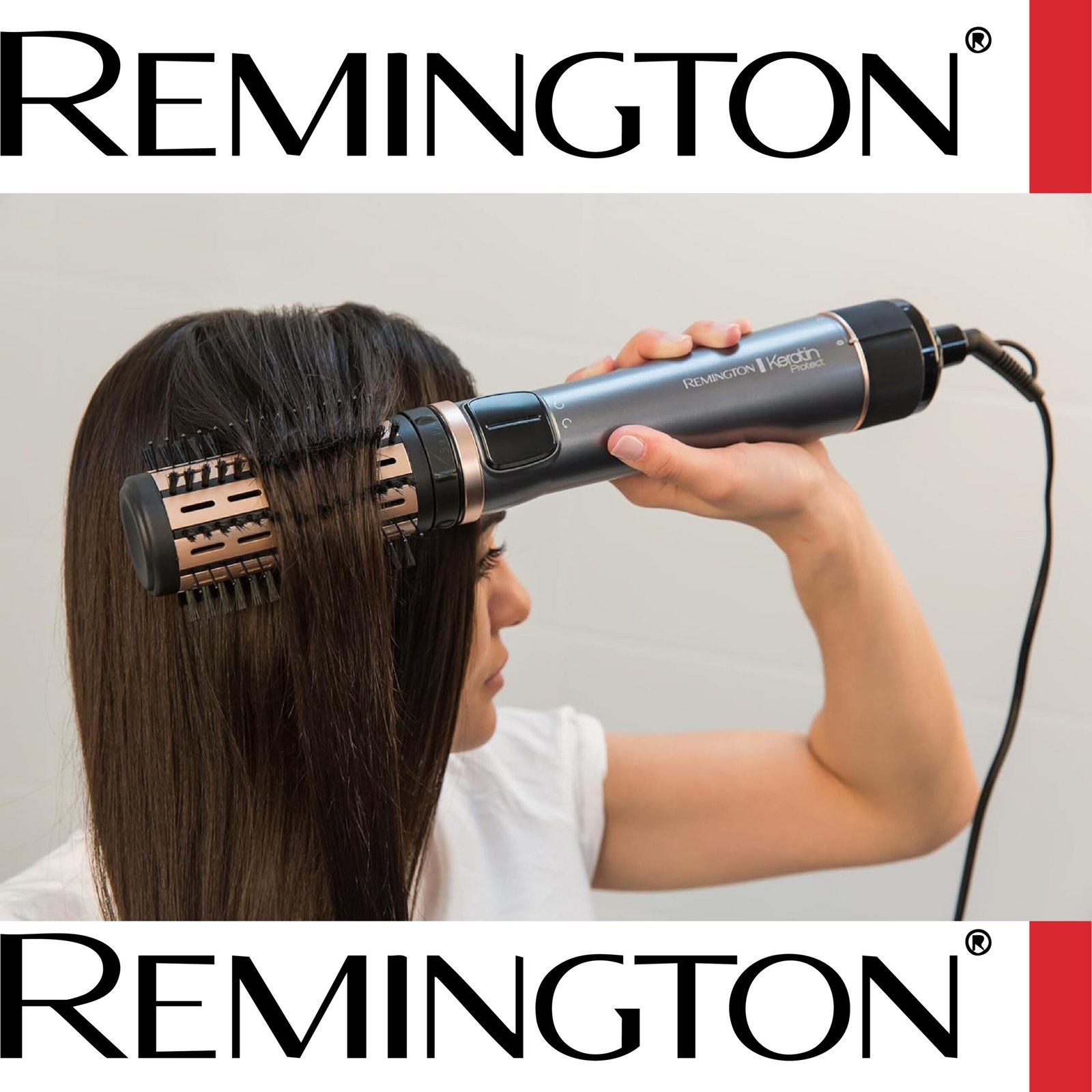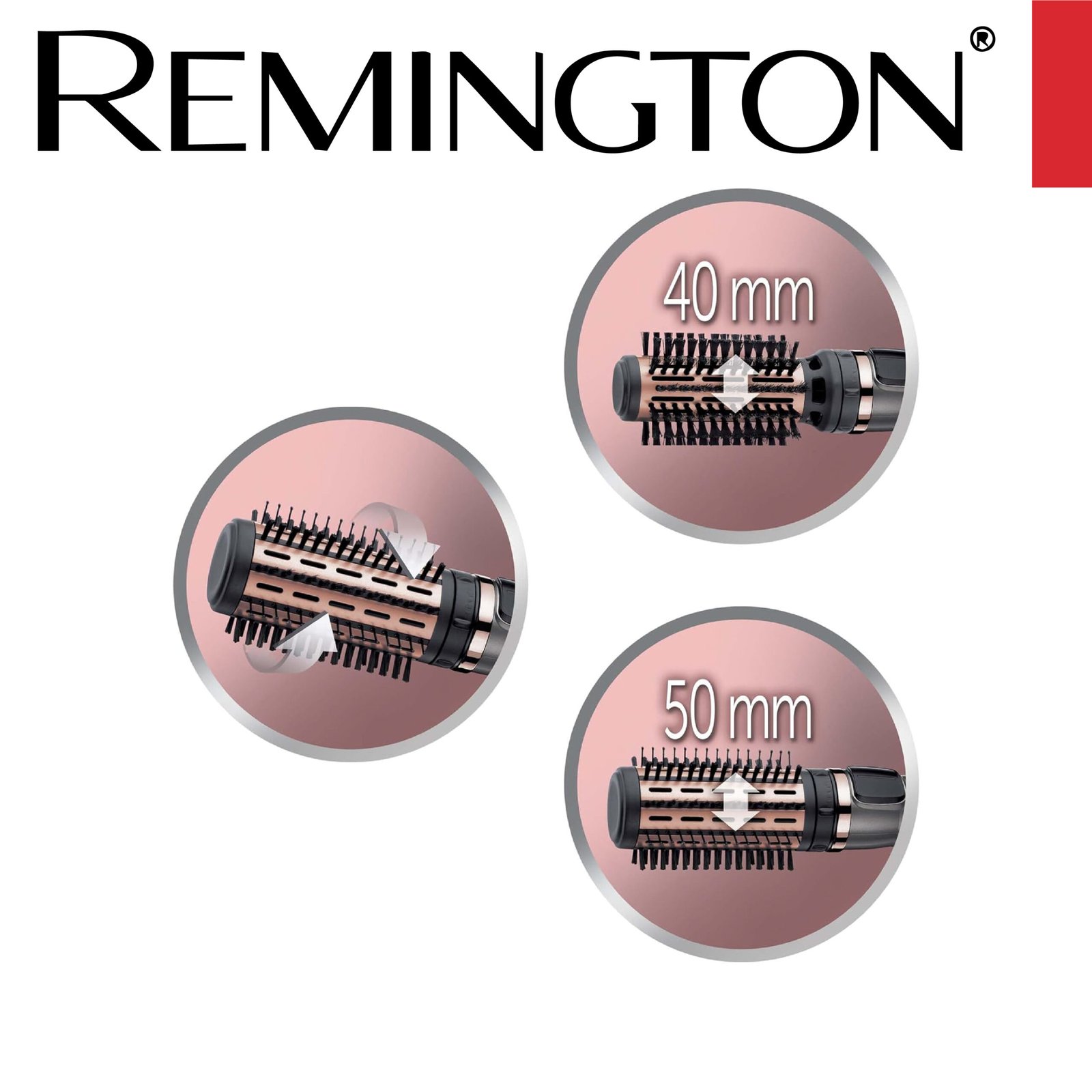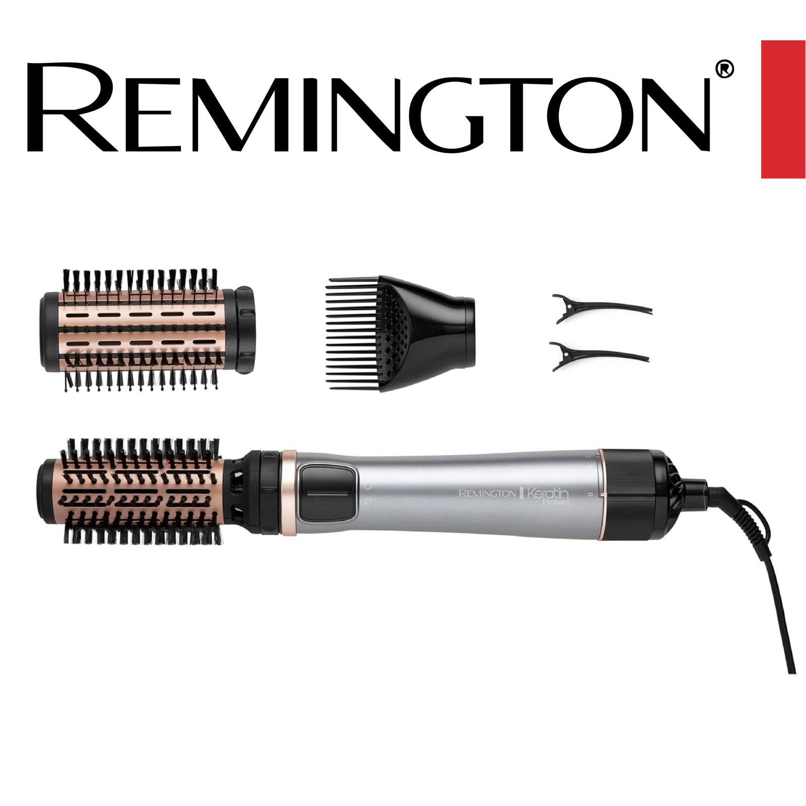 Remington Brosse Soufflante Rotative automatique [Soin kératine & huile d’amande] Keratin Protect (1000W, Céramique, Température variable, 3 accessoires: 2 brosses rondes 40 & 50mm + de Volume) AS8811