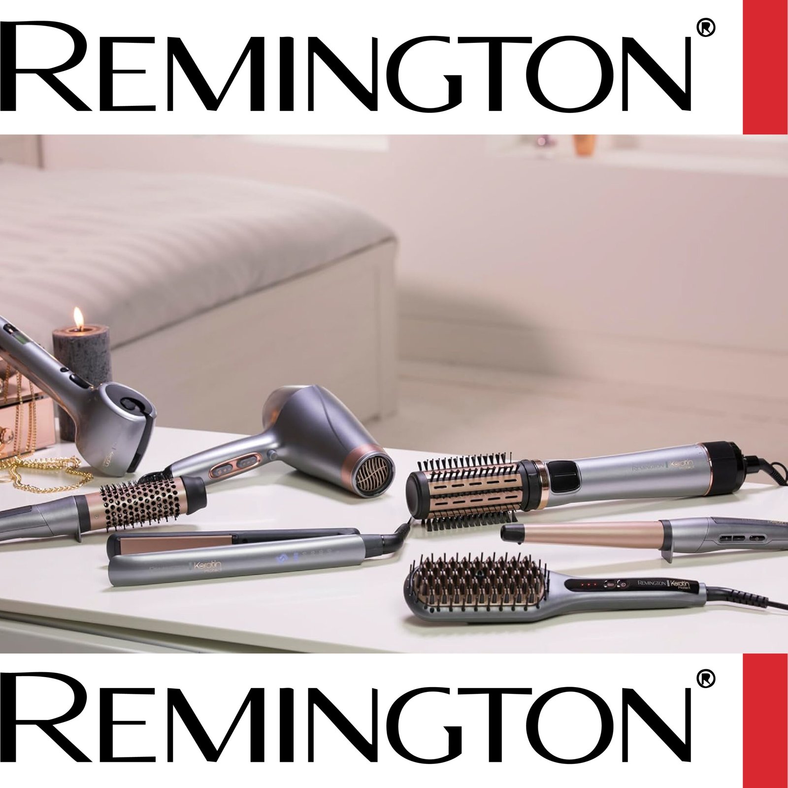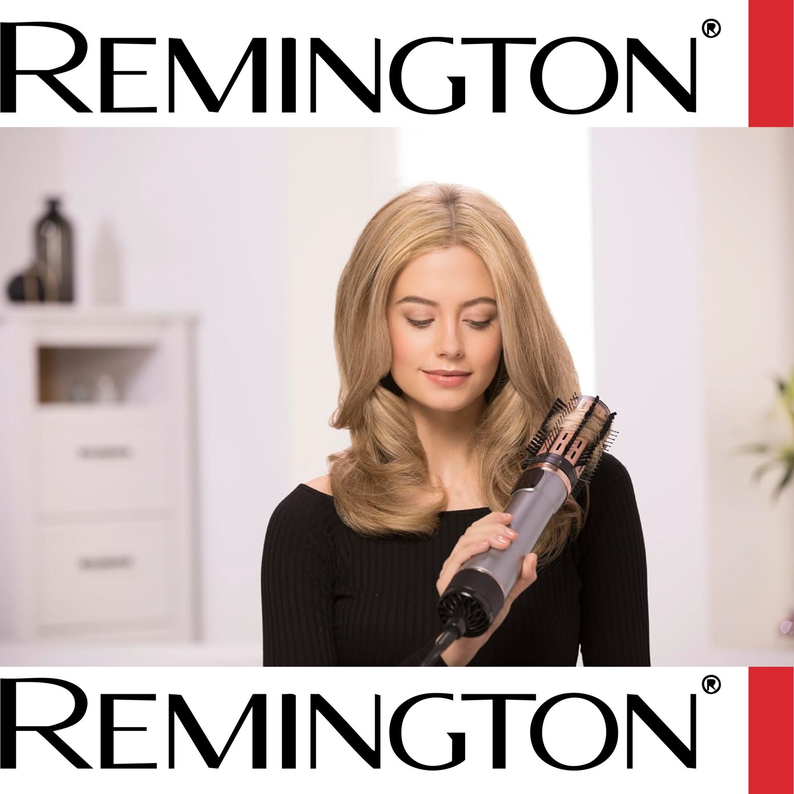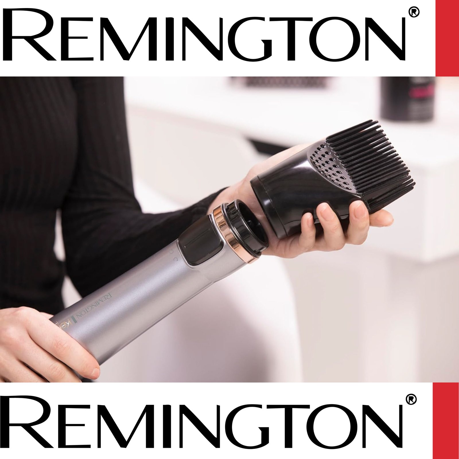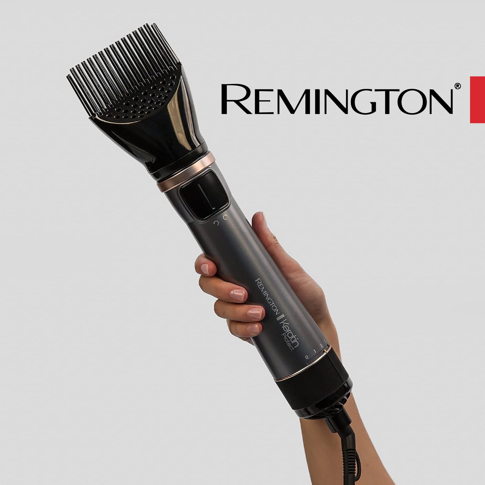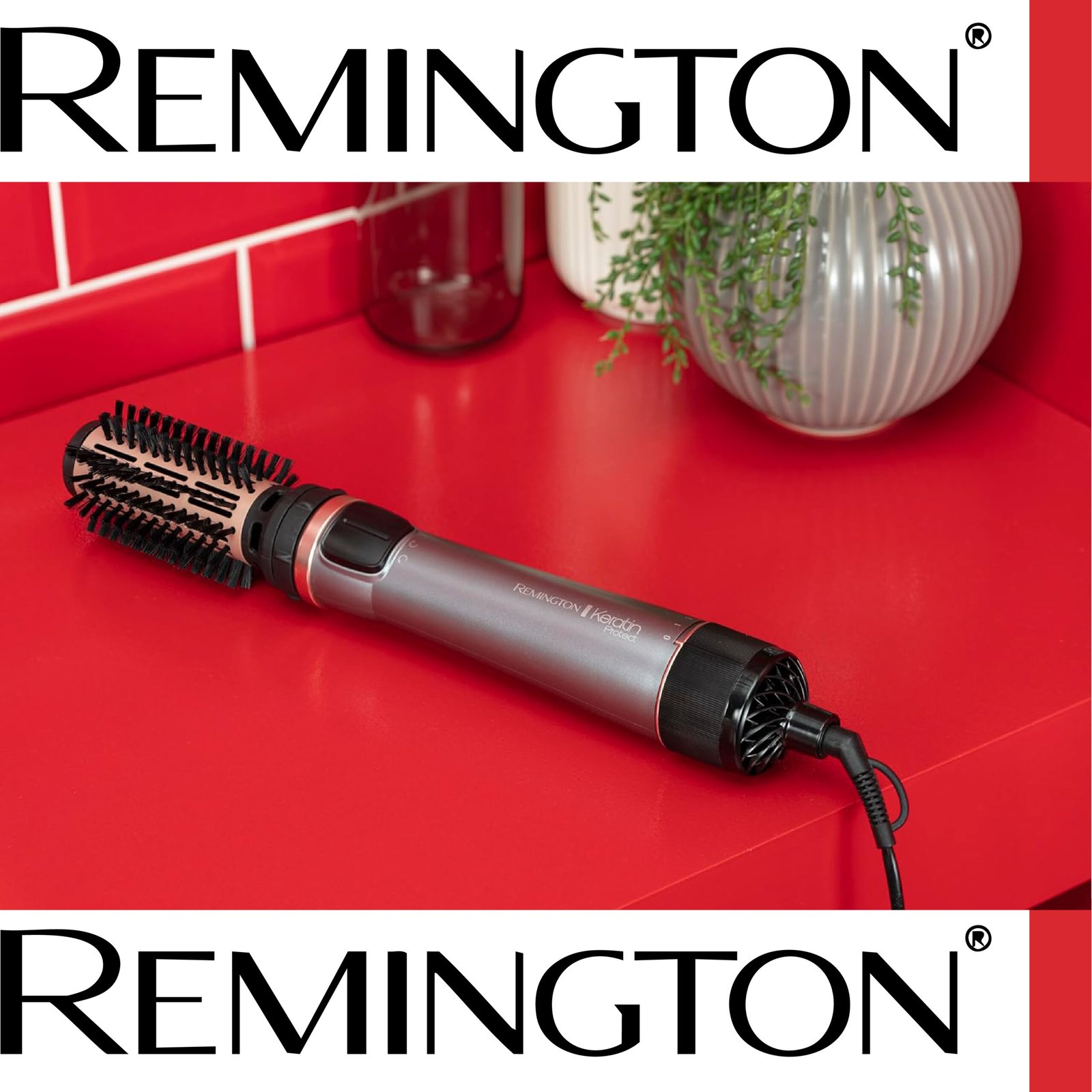 Remington Brosse Soufflante Rotative automatique [Soin kératine & huile d’amande] Keratin Protect (1000W, Céramique, Température variable, 3 accessoires: 2 brosses rondes 40 & 50mm + de Volume) AS8811