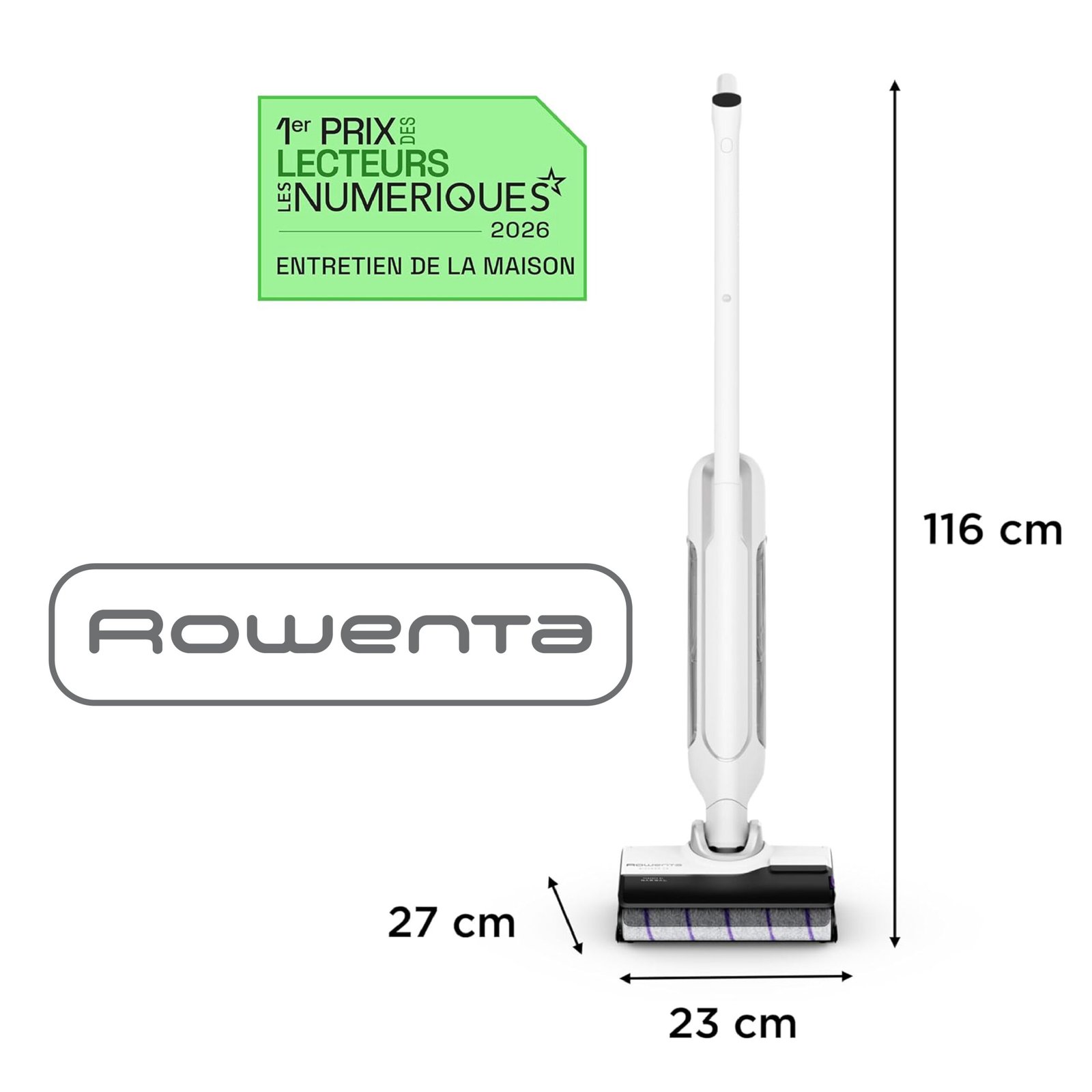 Rowenta X-Clean 10, Aspirateur Laveur sans fil, Design Plat 180°, Auto-Nettoyage et séchage 65°C, Autonomie 60min, Parfait pour Tâches Tenaces et Poils d’Animaux GZ7540WO, Blanc