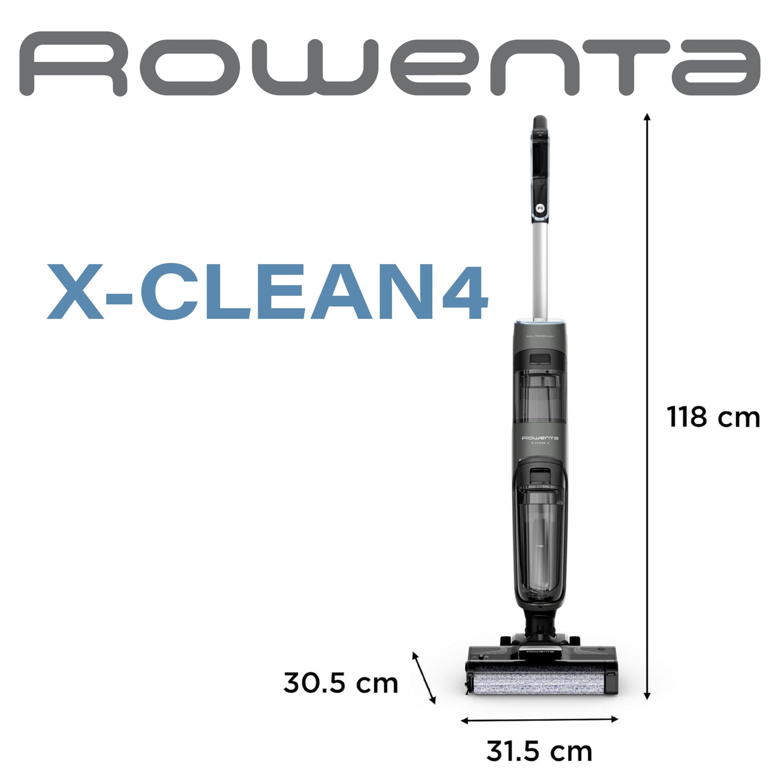 Rowenta X-Clean 4 Aspirateur Balai Laveur sans Fil, Aspiration et Lavage Puissant, Intelligent, Autonomie 50min, Autonettoyage GZ5037WO, Noir
