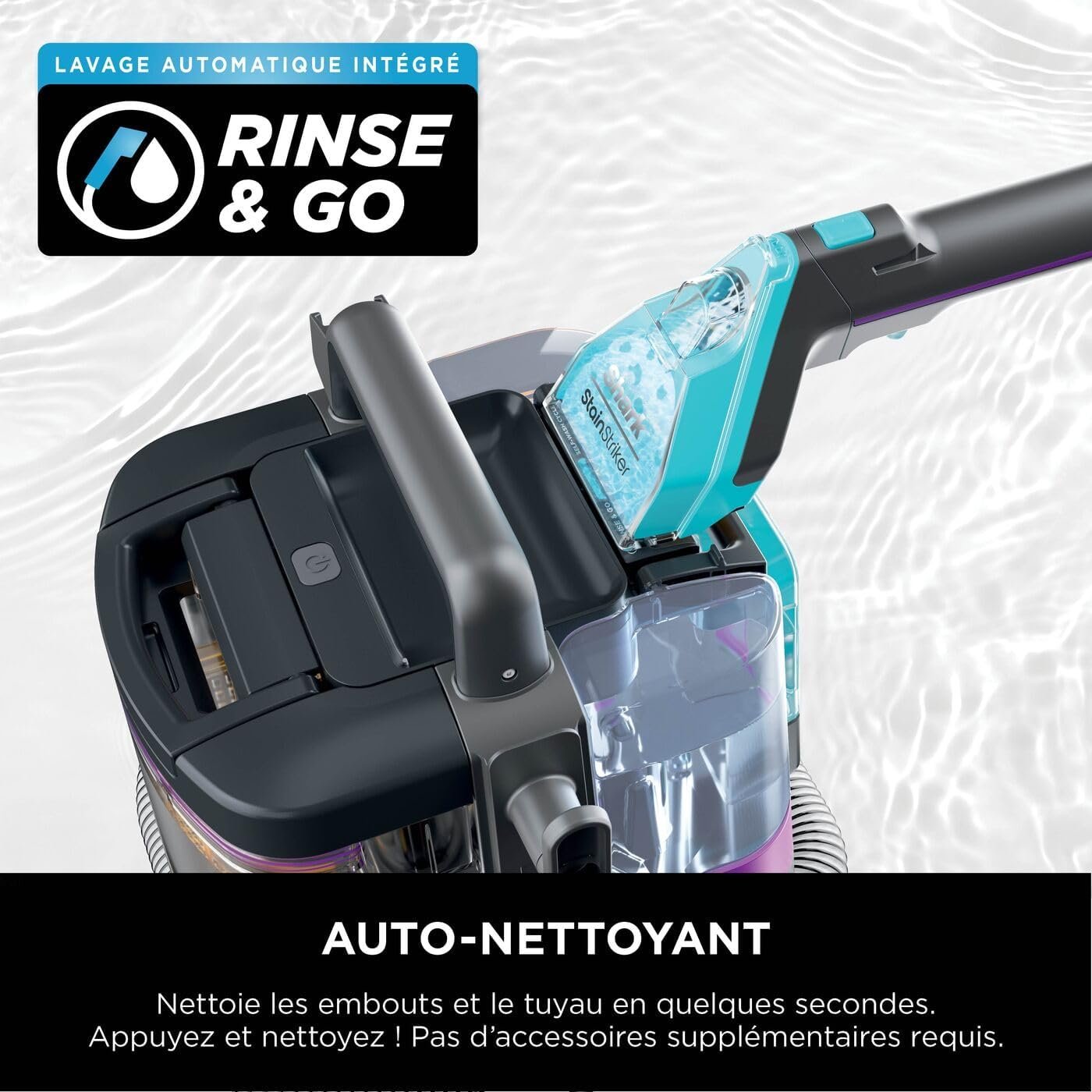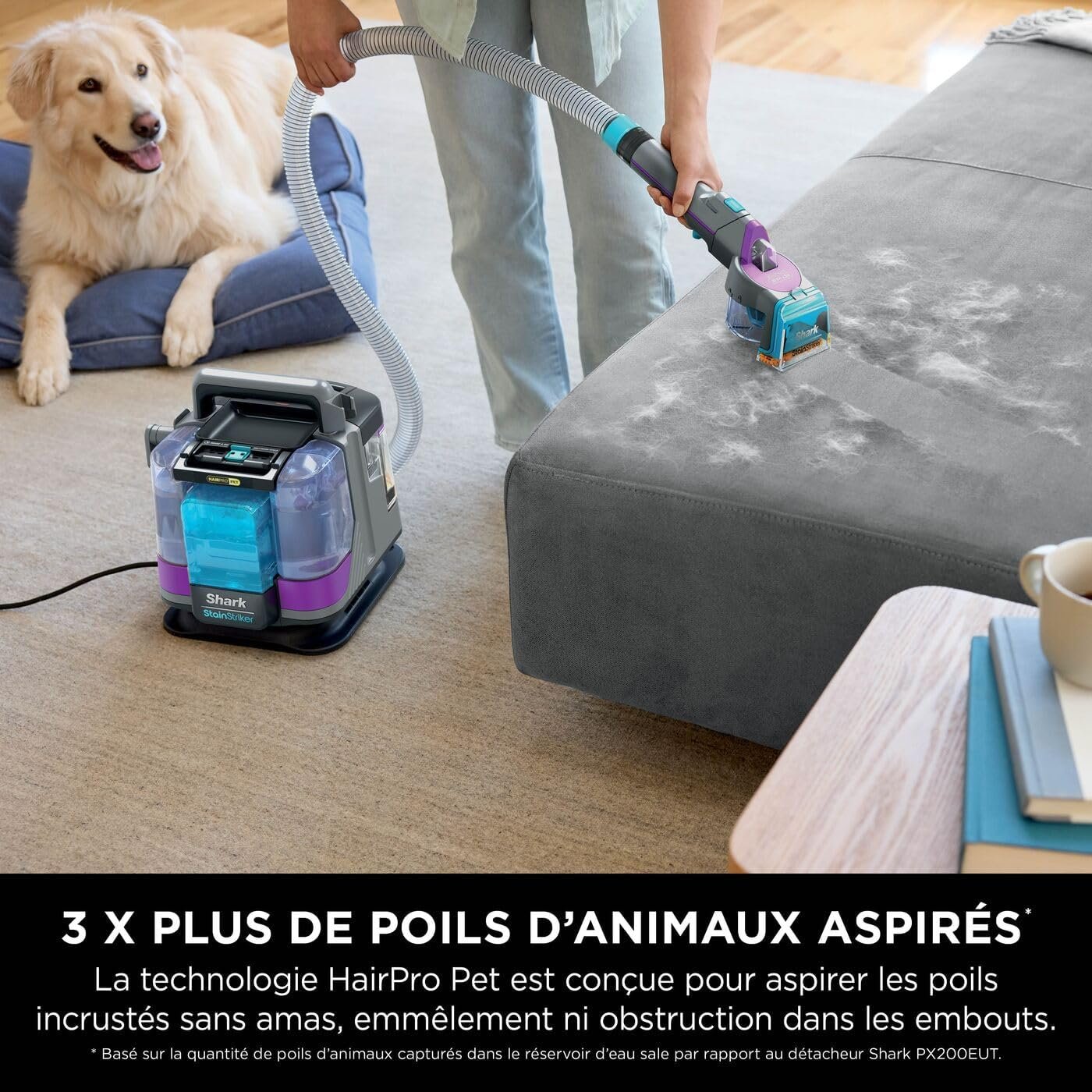 Shark StainStriker HairPro spécial animaux, Aspiration 450 W, Extracteur de poils, Élimine taches et odeurs, Léger et portable, Inclus : 4 accessoires et 2 formules de nettoyage PX250EUT