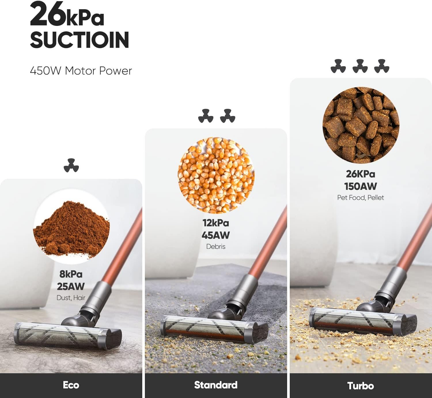SHUNZAO Z11 Max Aspirateur sans Fil - 450W 26000Pa Aspirateur Balai 4 en 1 Aspirateur 3 Modes avec Affichage LED Aspiration Puissante x1
