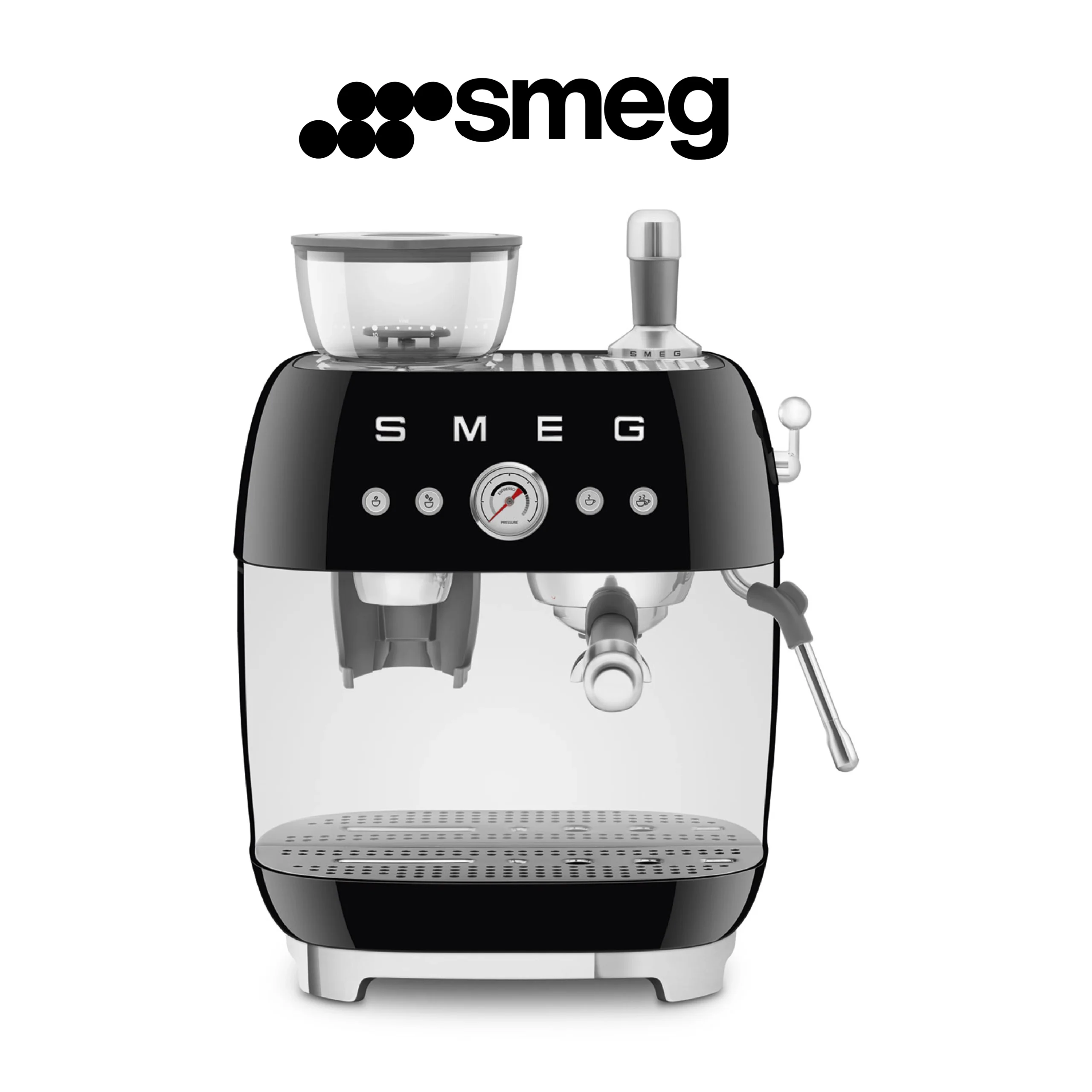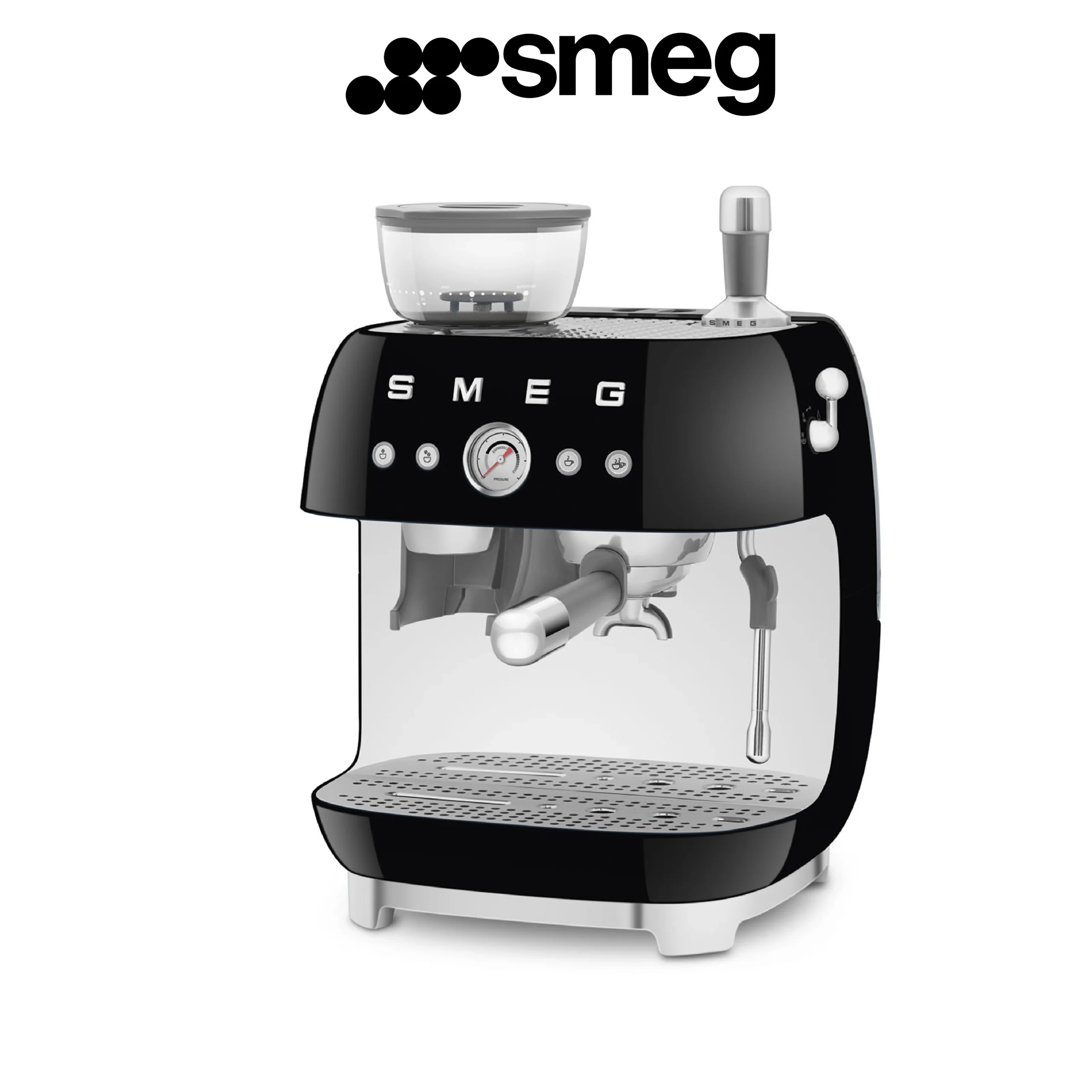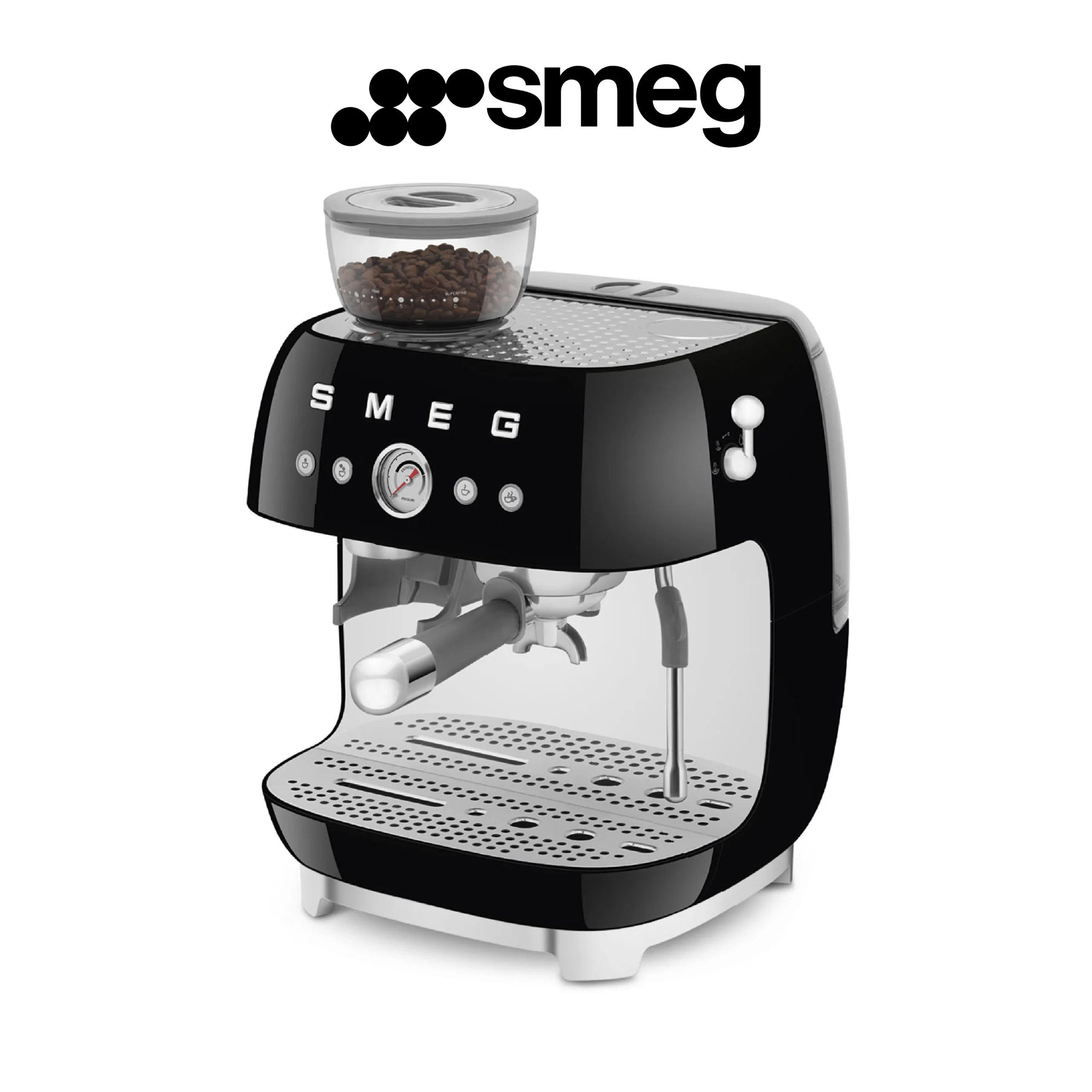 Smeg, Machine à Café Expresso Manuelle EGF03BLEU, avec Broyeur à Grain Intégré, Thermoblock, 4 Niveaux de Température, Buse Vapeur et Manomètre, Réservoir 1 L, Dimensions Compactes, 1350W, Noir