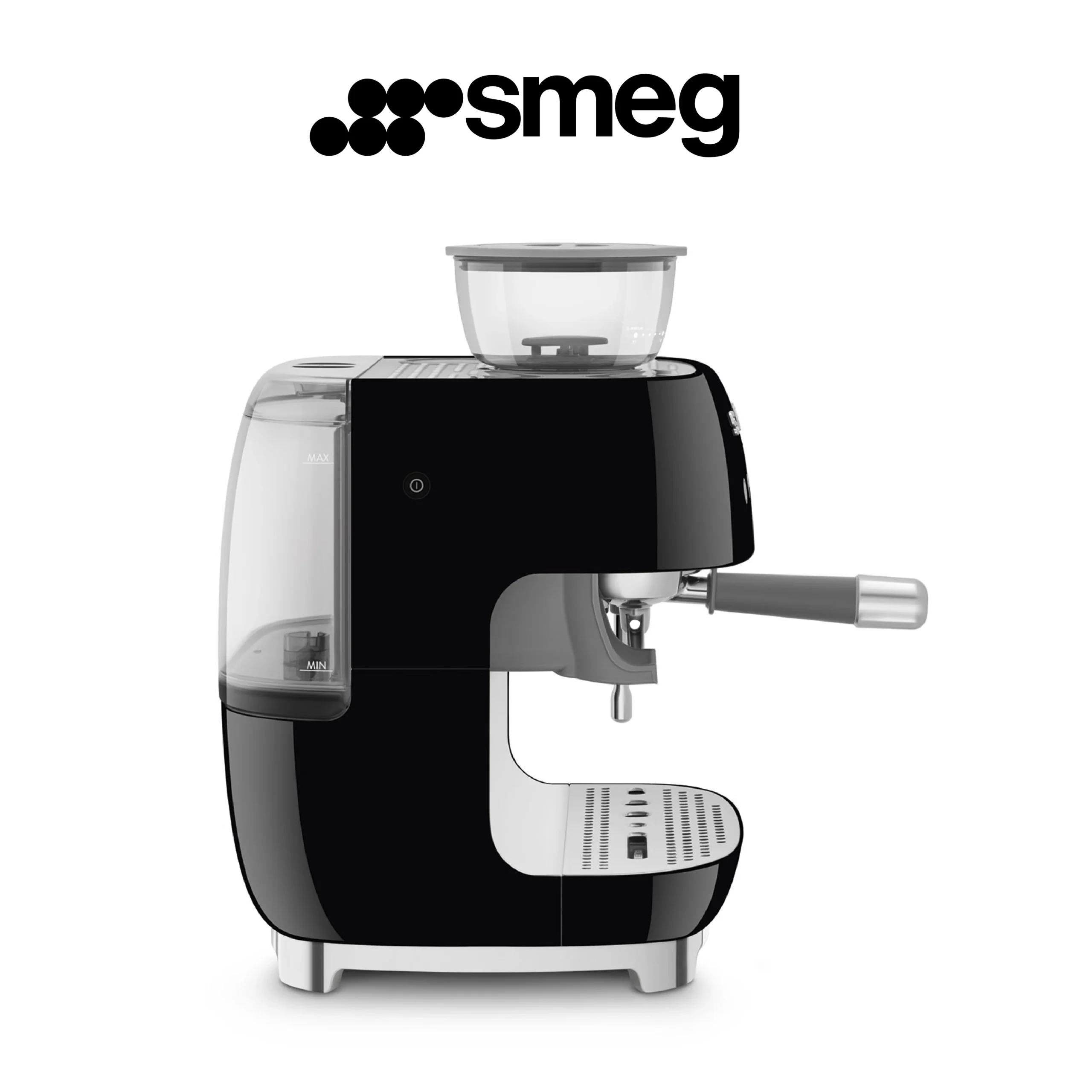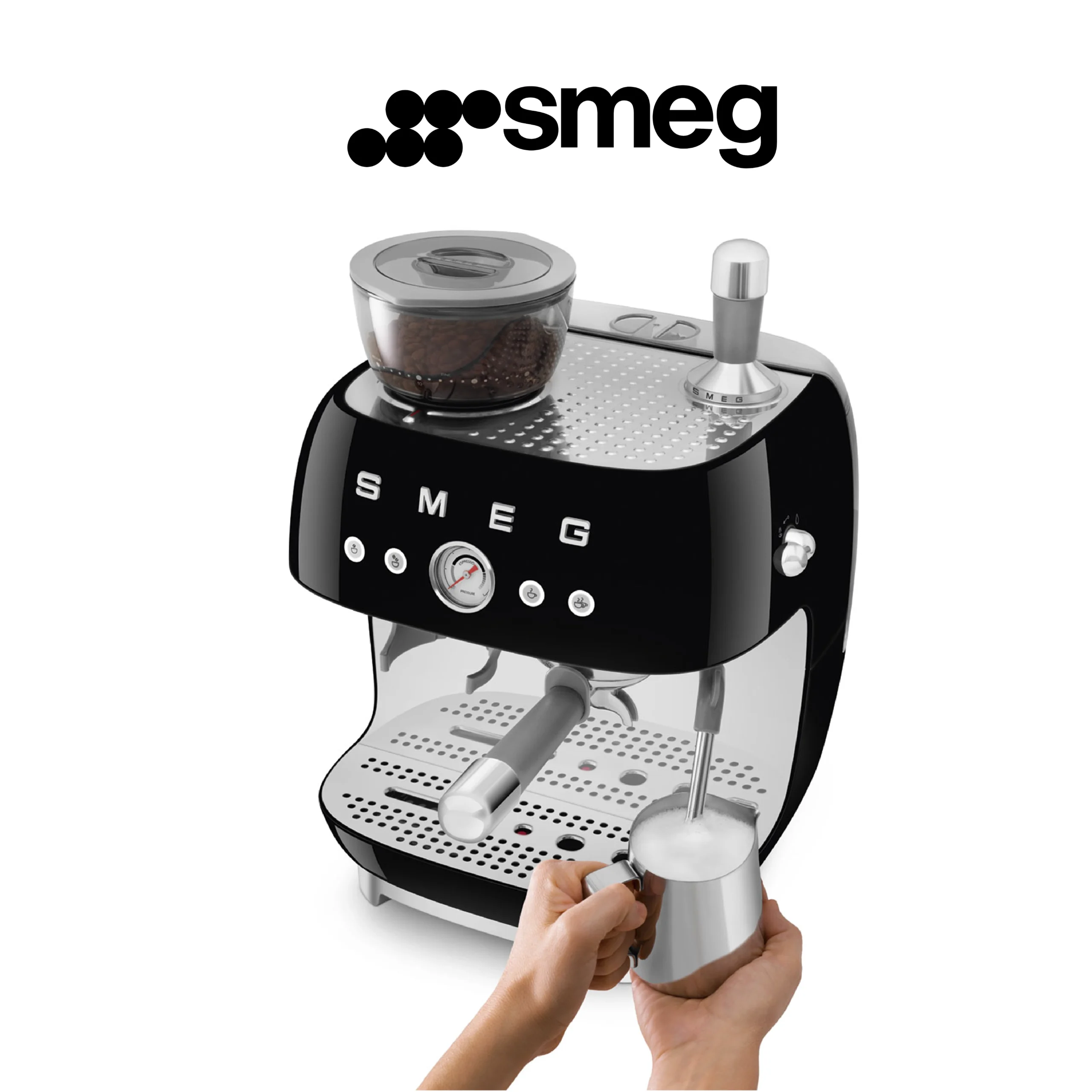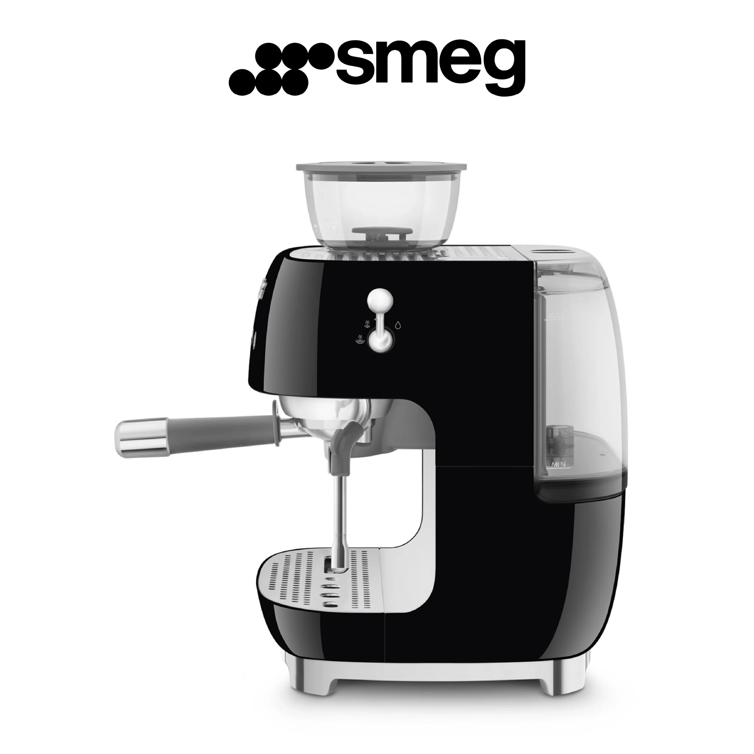 Smeg, Machine à Café Expresso Manuelle EGF03BLEU, avec Broyeur à Grain Intégré, Thermoblock, 4 Niveaux de Température, Buse Vapeur et Manomètre, Réservoir 1 L, Dimensions Compactes, 1350W, Noir