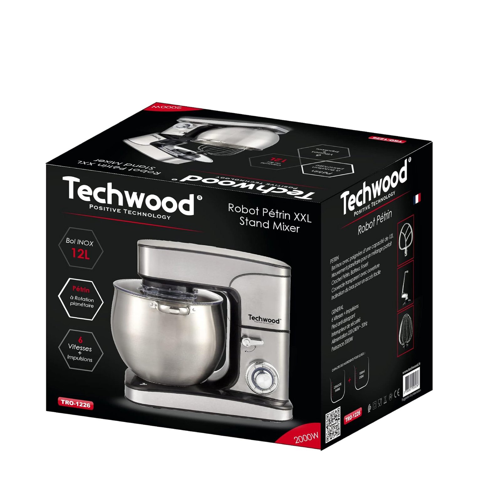 TECHWOOD Robot Pétrin 12L – 2000W INOX Réf: TRO-1226