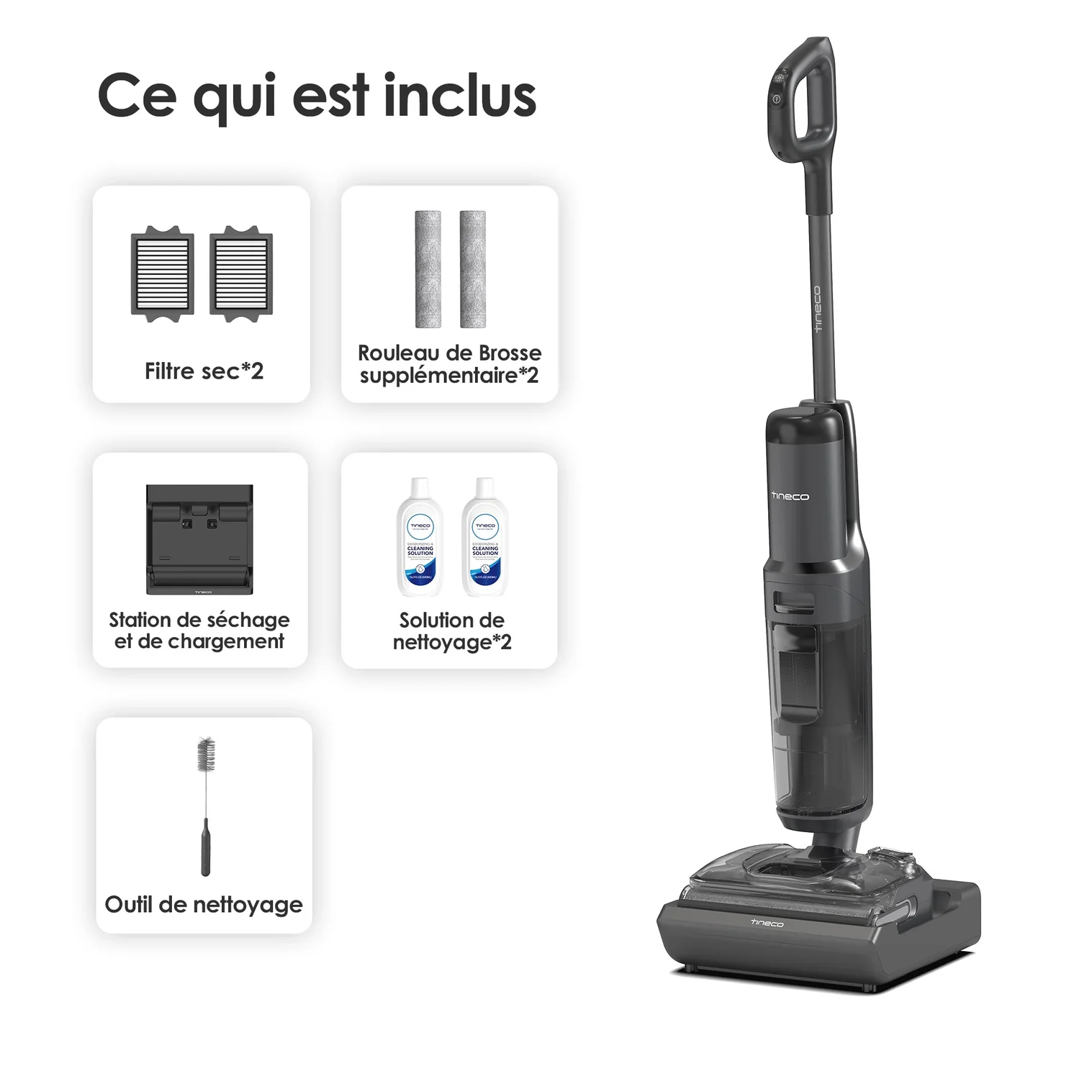 AspirateurTineco Floor One S5 Combo PLUS Aspirateur et Laveur Sec et Humide sans Fil Intelligent, Parfait pour Les Saletés Collantes et Les Poils d’animaux, Léger, Ultra-Silencieux, Écran Intelligent
